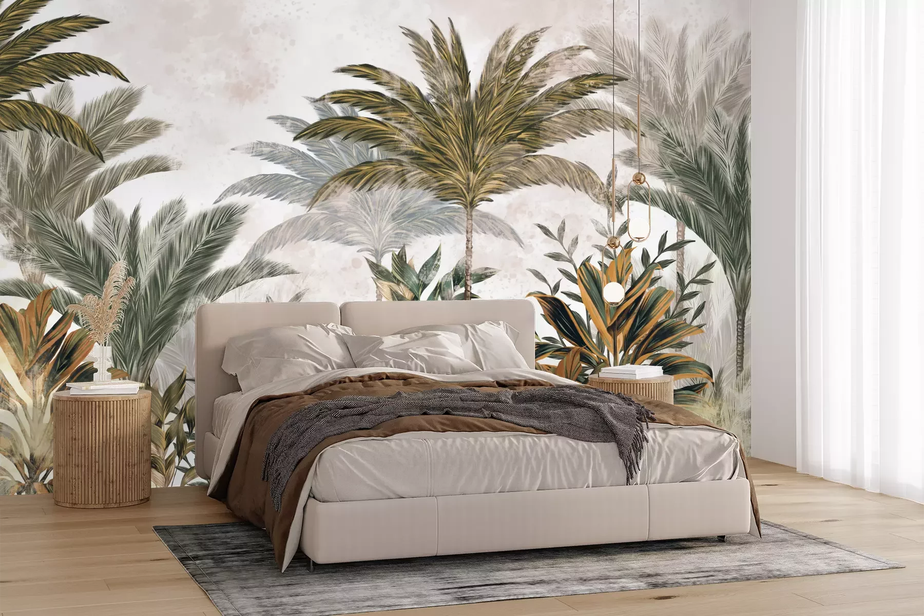 Het materiaal Premium+ is een gestructureerd vinyl op vlies met een gewicht van 255 g/m², dat kleine oneffenheden in de muur effectief camoufleert. De subtiele structuur van fijn zand geeft het oppervlak een exclusieve uitstraling, terwijl de halfmatte afwerking de diepte van de kleuren benadrukt. Het materiaal is dampdoorlatend, waardoor het ook in de keuken en badkamer kan worden gebruikt. De maximale breedte van één baan bedraagt 100 cm – bij grotere afmetingen wordt het fotobehang in meerdere gelijke banen verdeeld. De lijm wordt direct op de muur aangebracht en het behang wordt rand-aan-rand geplakt, wat zorgt voor een esthetisch resultaat zonder zichtbare naden. Het oppervlak kan gemakkelijk worden schoongemaakt door het voorzichtig af te nemen met een vochtige doek.