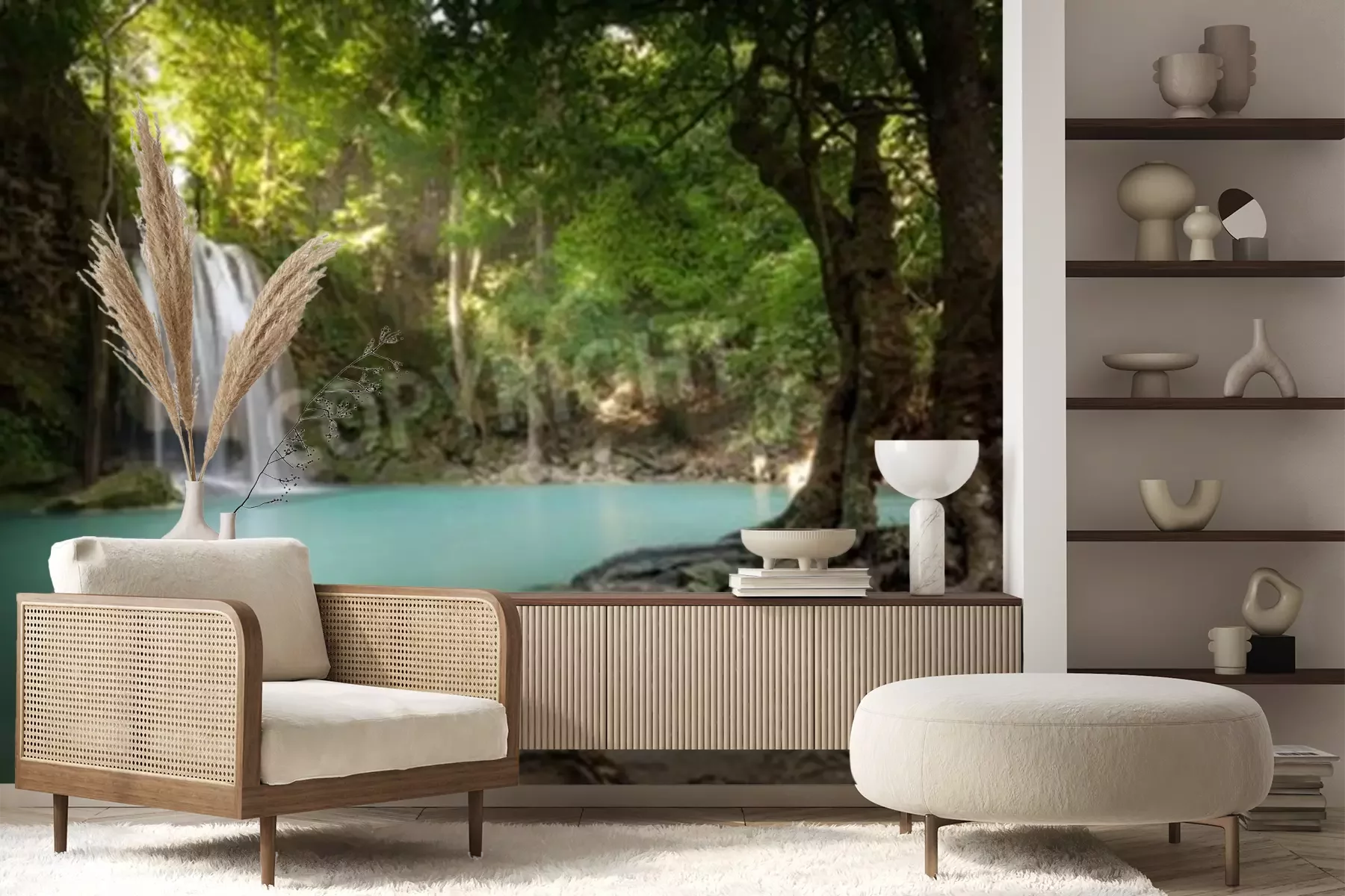 Fotobehang Jungle landschap met waterval