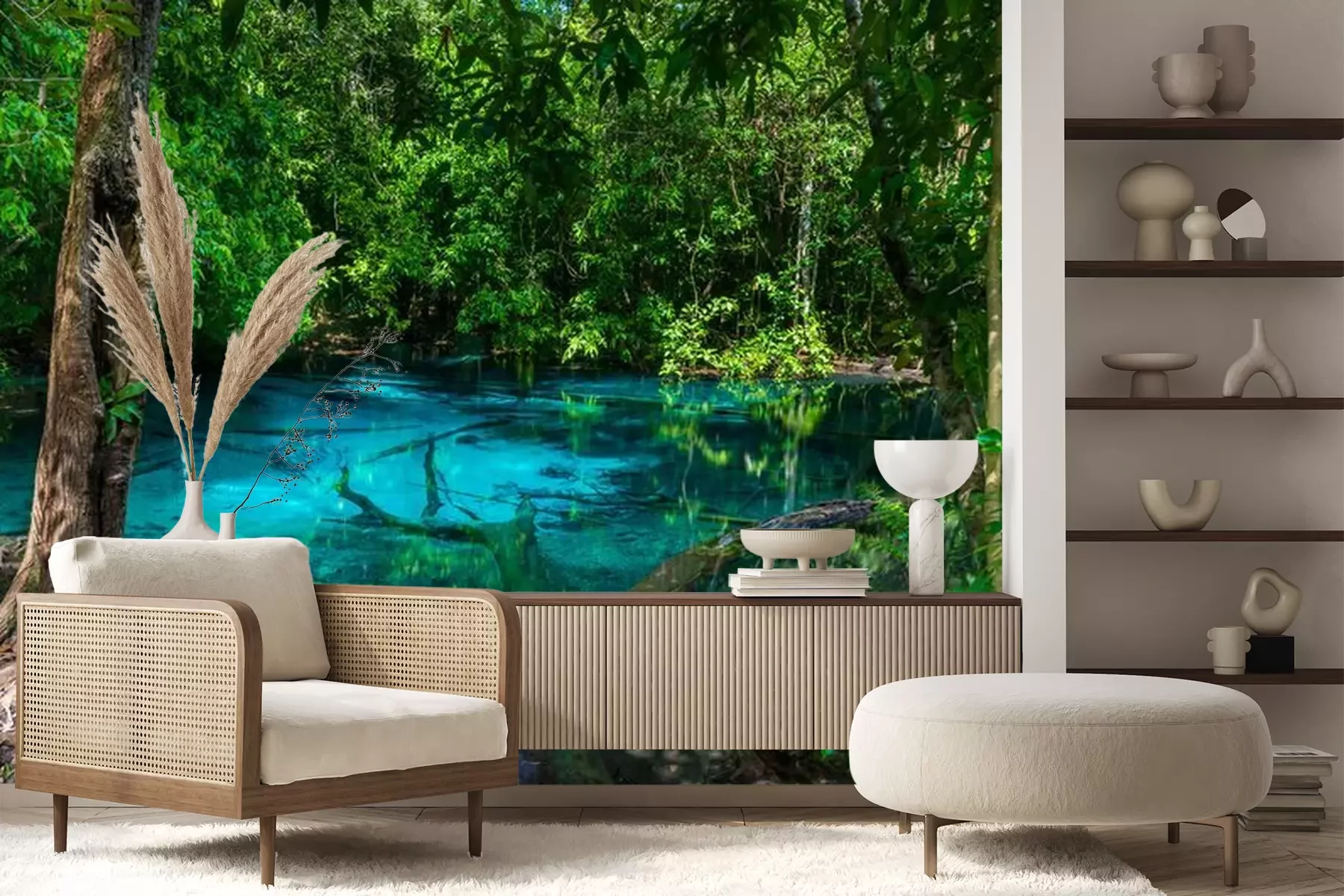 Het materiaal Premium+ is een gestructureerd vinyl op vlies met een gewicht van 255 g/m², dat kleine oneffenheden in de muur effectief camoufleert. De subtiele structuur van fijn zand geeft het oppervlak een exclusieve uitstraling, terwijl de halfmatte afwerking de diepte van de kleuren benadrukt. Het materiaal is dampdoorlatend, waardoor het ook in de keuken en badkamer kan worden gebruikt. De maximale breedte van één baan bedraagt 100 cm – bij grotere afmetingen wordt het fotobehang in meerdere gelijke banen verdeeld. De lijm wordt direct op de muur aangebracht en het behang wordt rand-aan-rand geplakt, wat zorgt voor een esthetisch resultaat zonder zichtbare naden. Het oppervlak kan gemakkelijk worden schoongemaakt door het voorzichtig af te nemen met een vochtige doek.