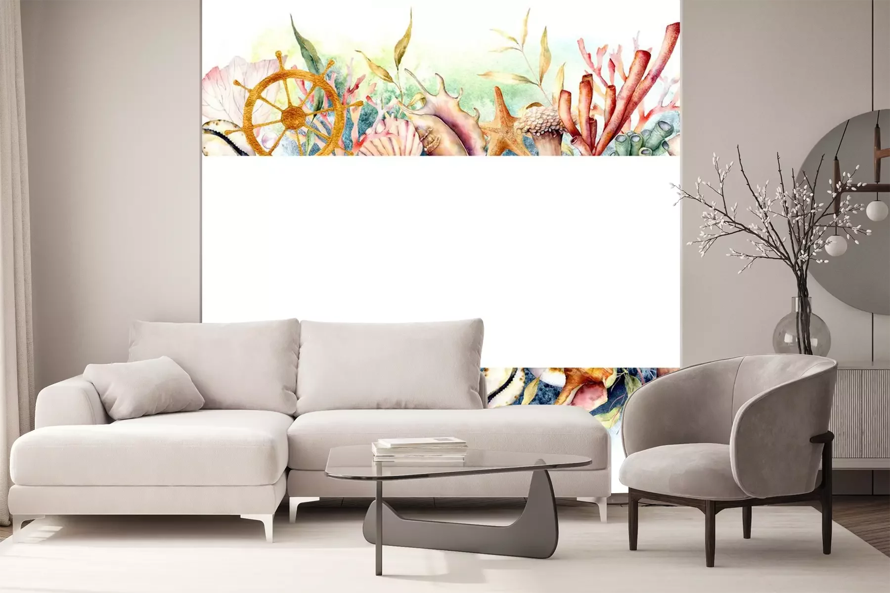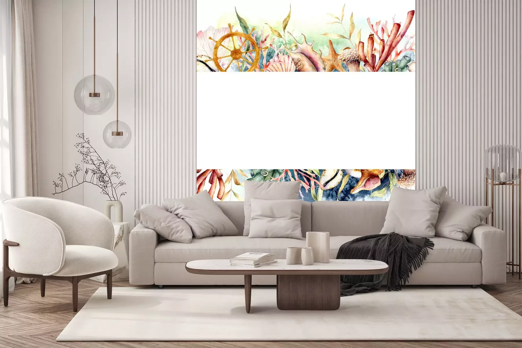 Fotobehang Kader van aquarel koraalrif
