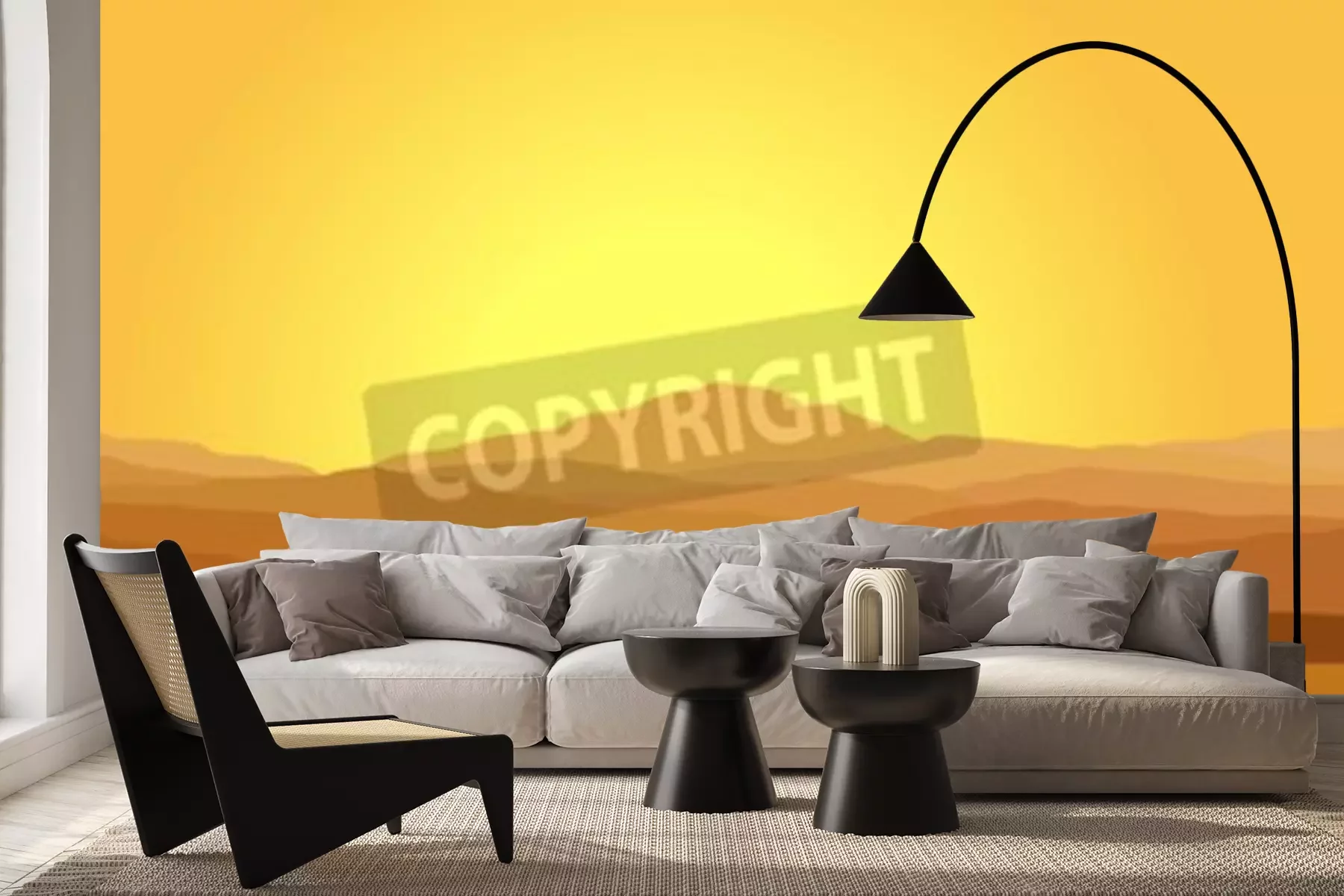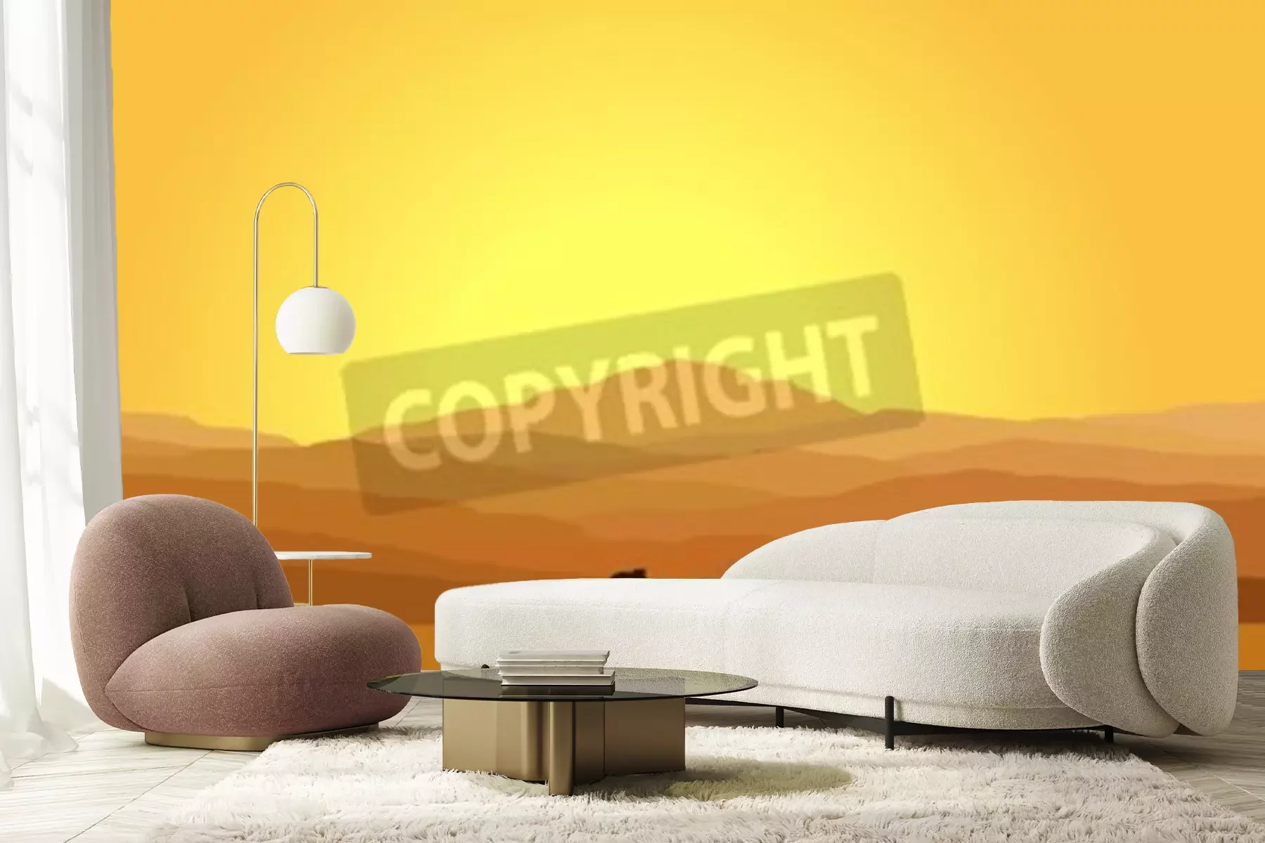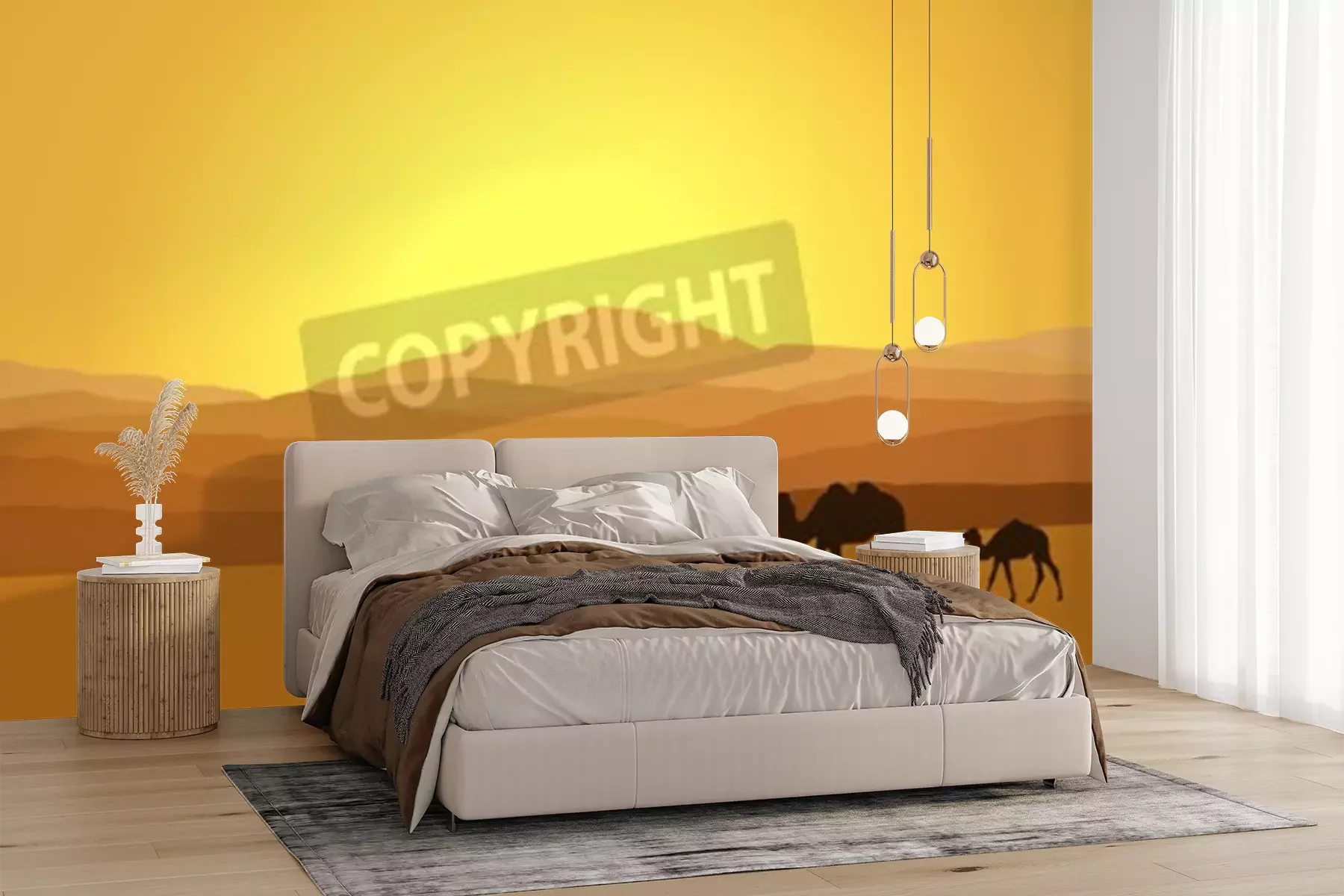 Fotobehang Karavaan in de woestijn in grafische stijl