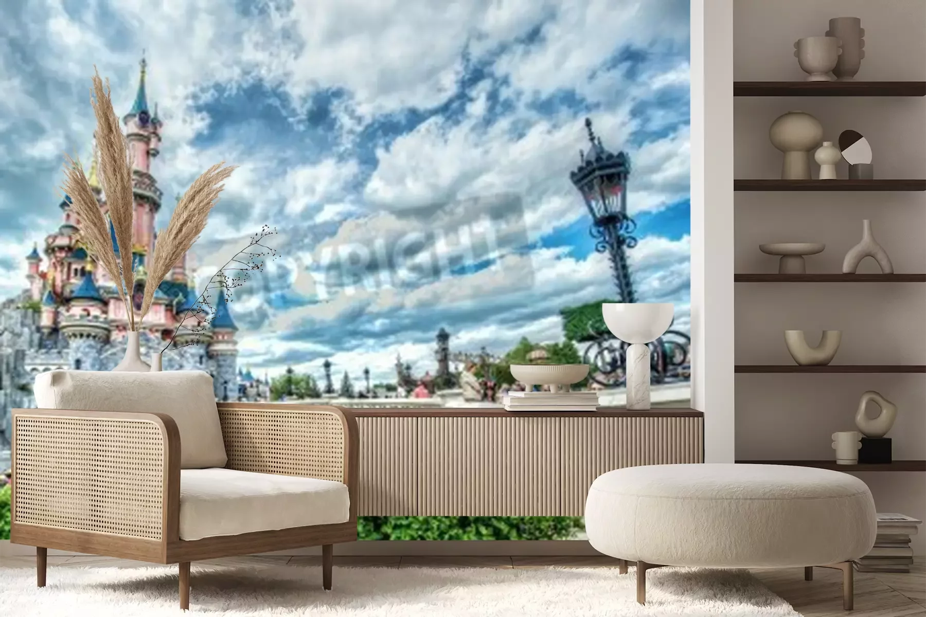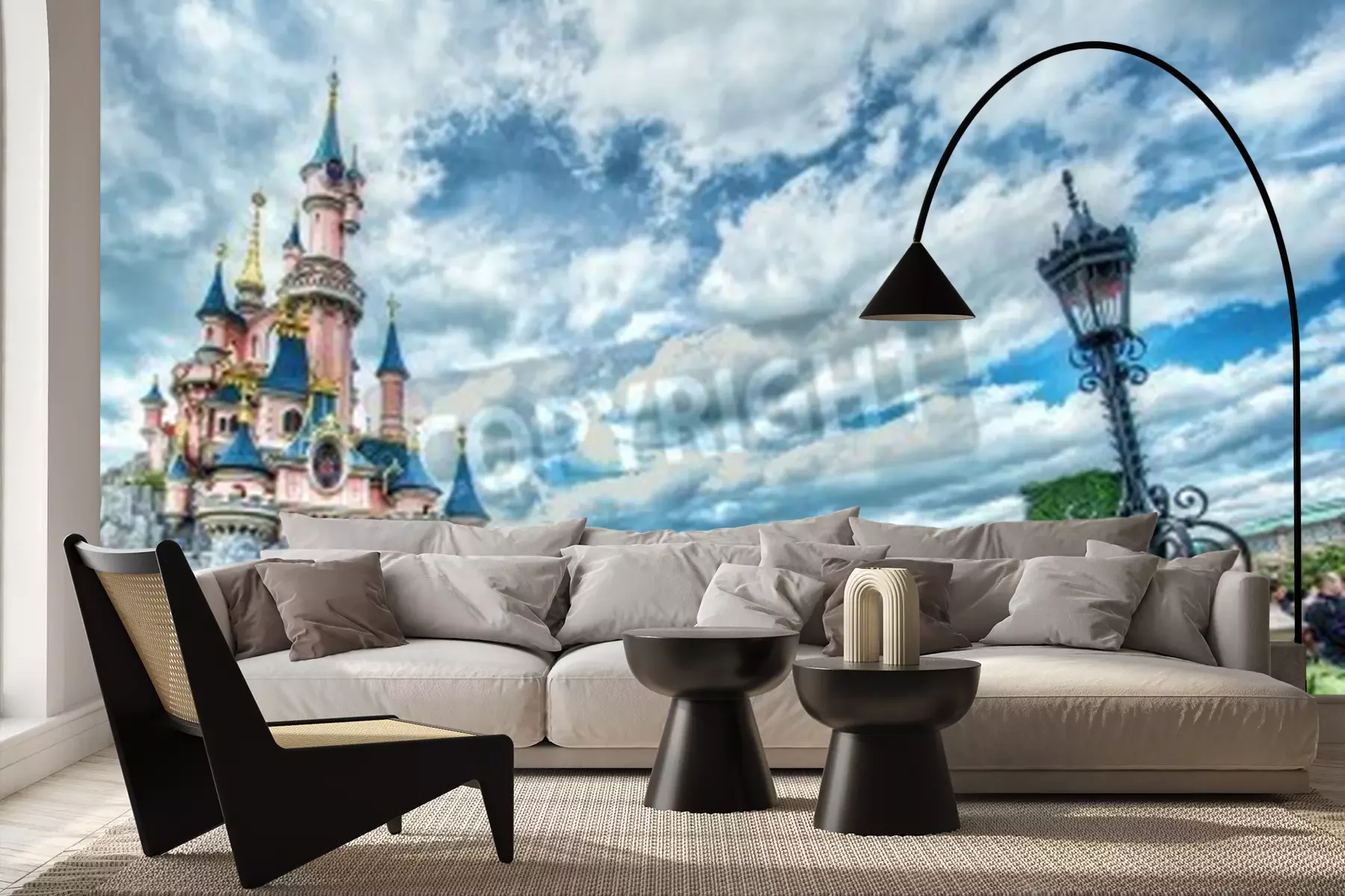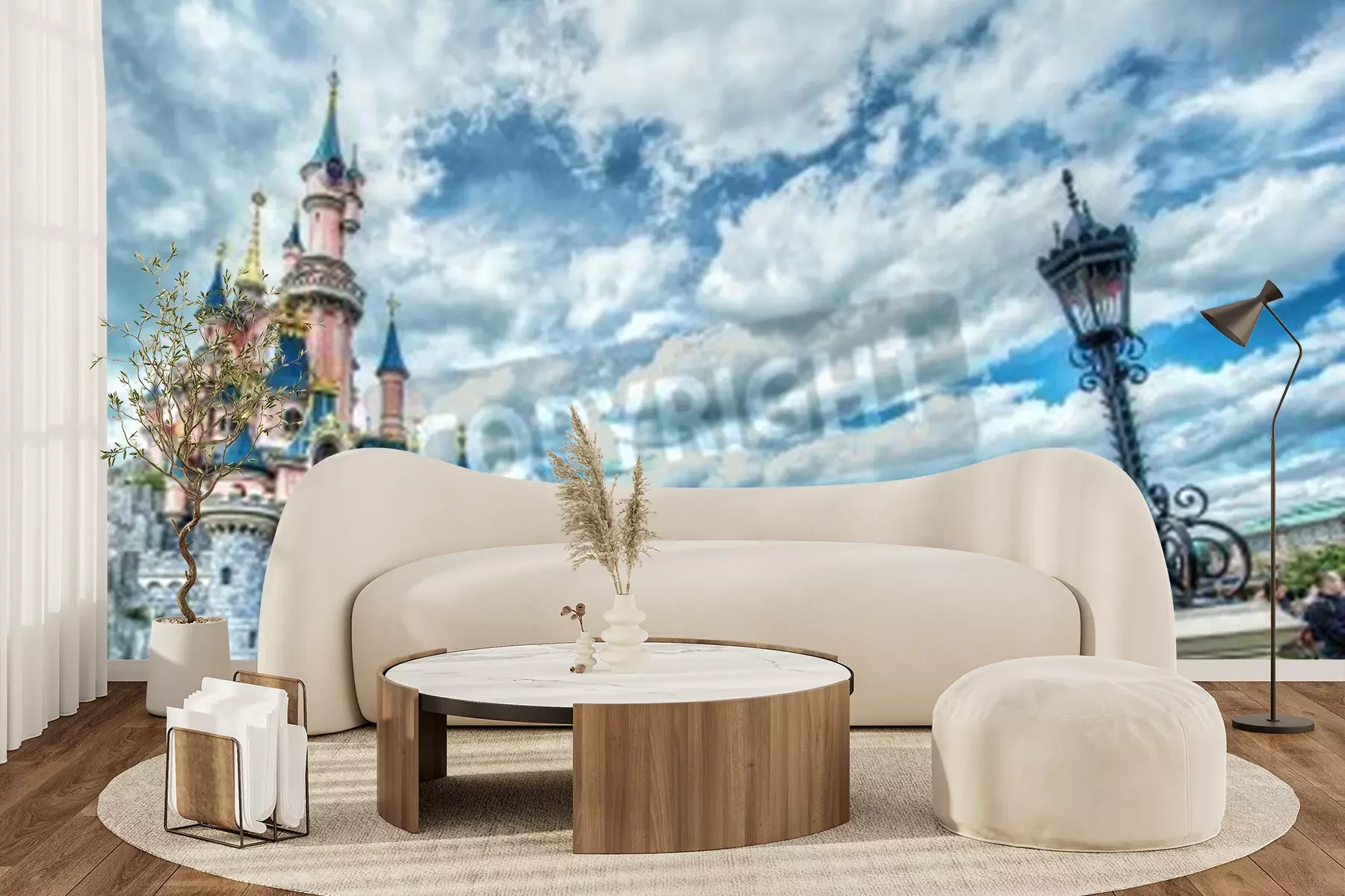 Fotobehang Kasteel van Disney en brug op een zonnige dag