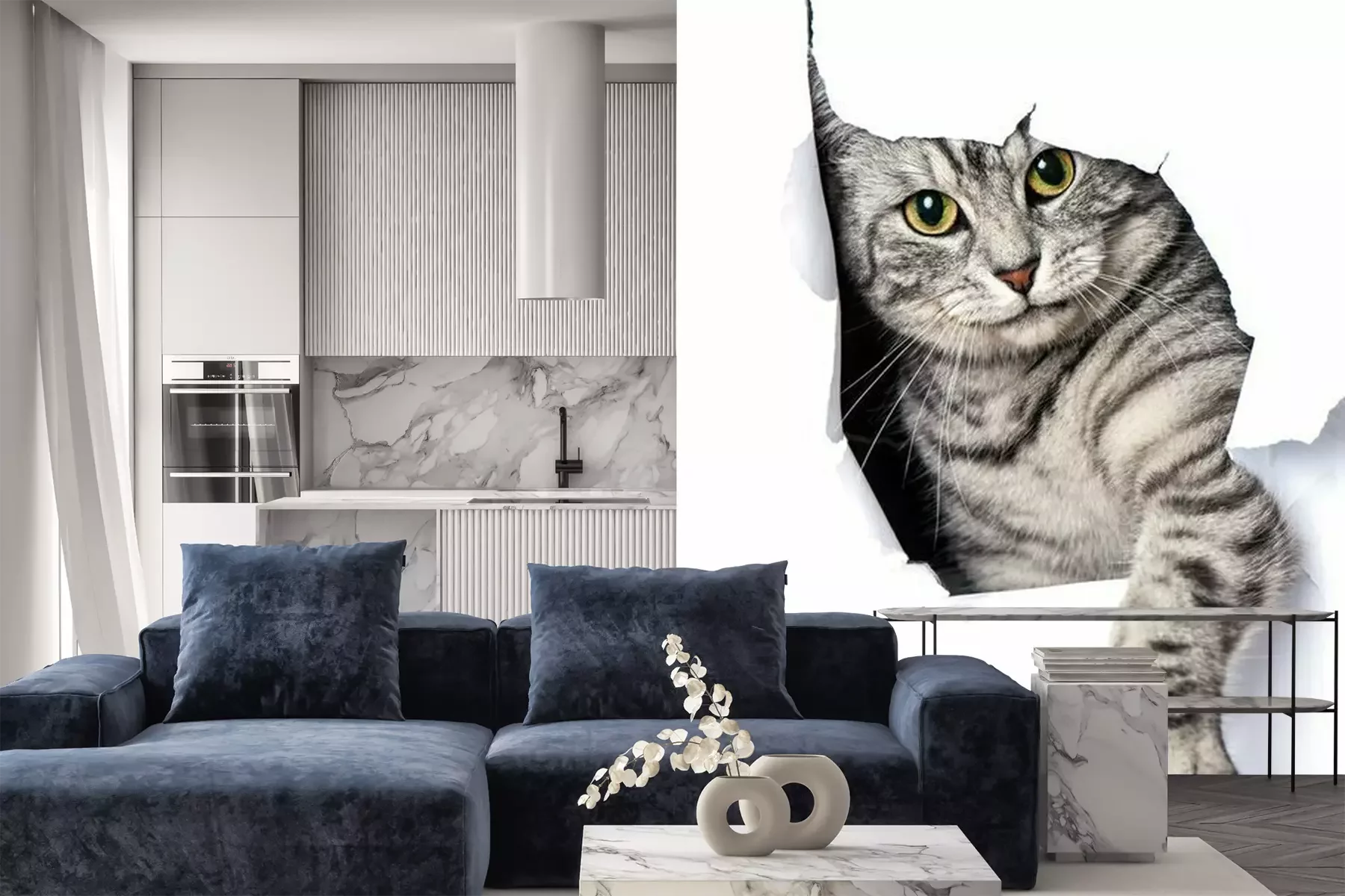 Fotobehang Kat 3D in papier