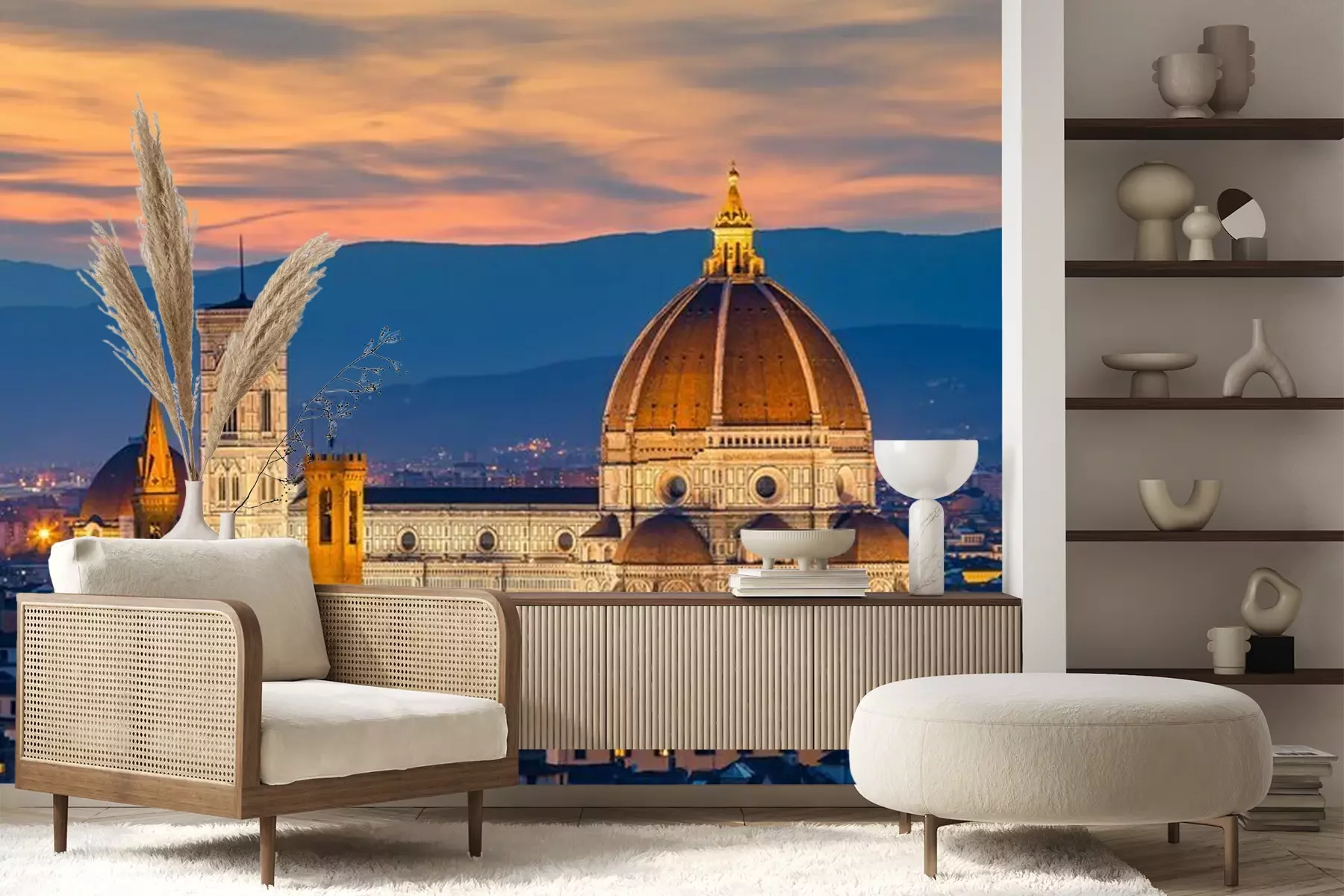 Het materiaal Premium+ is een gestructureerd vinyl op vlies met een gewicht van 255 g/m², dat kleine oneffenheden in de muur effectief camoufleert. De subtiele structuur van fijn zand geeft het oppervlak een exclusieve uitstraling, terwijl de halfmatte afwerking de diepte van de kleuren benadrukt. Het materiaal is dampdoorlatend, waardoor het ook in de keuken en badkamer kan worden gebruikt. De maximale breedte van één baan bedraagt 100 cm – bij grotere afmetingen wordt het fotobehang in meerdere gelijke banen verdeeld. De lijm wordt direct op de muur aangebracht en het behang wordt rand-aan-rand geplakt, wat zorgt voor een esthetisch resultaat zonder zichtbare naden. Het oppervlak kan gemakkelijk worden schoongemaakt door het voorzichtig af te nemen met een vochtige doek.