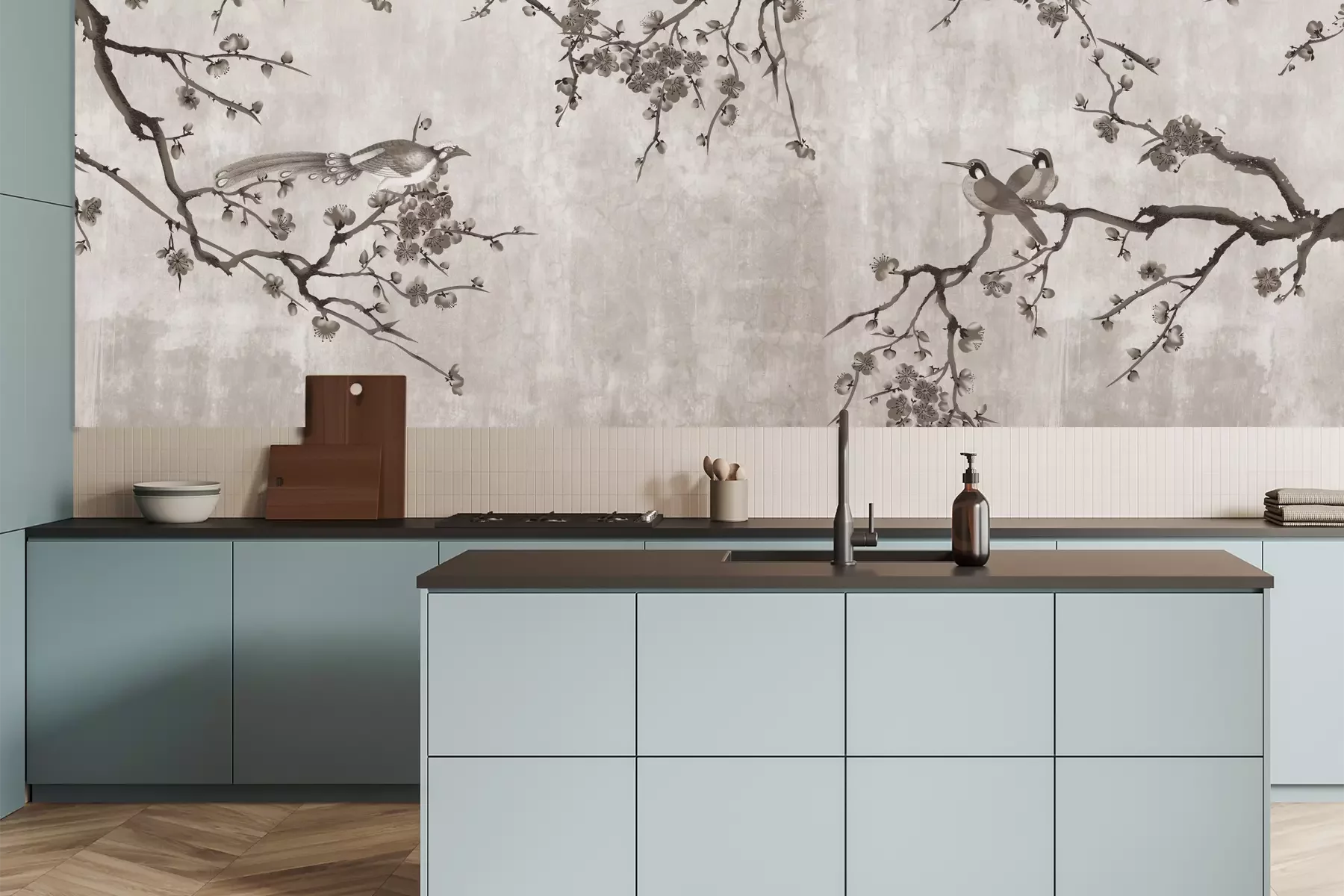Het materiaal Premium is een glad vinyl op vlies, dat bestand is tegen uitrekken en vervorming. Het is dampdoorlatend – de muren kunnen vrij ademen – waardoor het geschikt is voor gebruik in de keuken en badkamer. Bij vervuiling kan het materiaal worden afgenomen met een vochtige doek. De maximale breedte van één baan bedraagt 95 of 105 cm, afhankelijk van de beschikbaarheid. Montage vindt plaats met de rand-aan-rand methode, wat een esthetisch resultaat zonder zichtbare naden oplevert. Omdat de lijm rechtstreeks op de muur wordt aangebracht, verloopt de installatie van het fotobehang snel en eenvoudig.