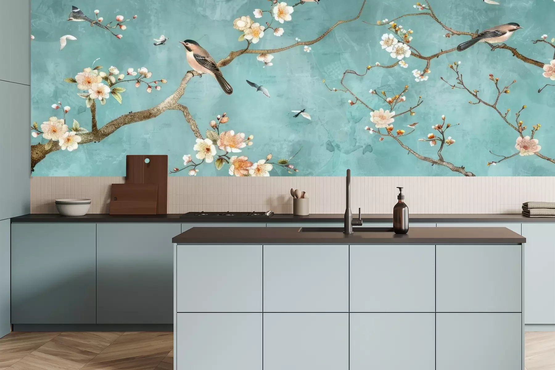 Het materiaal Premium is een glad vinyl op vlies, dat bestand is tegen uitrekken en vervorming. Het is dampdoorlatend – de muren kunnen vrij ademen – waardoor het geschikt is voor gebruik in de keuken en badkamer. Bij vervuiling kan het materiaal worden afgenomen met een vochtige doek. De maximale breedte van één baan bedraagt 95 of 105 cm, afhankelijk van de beschikbaarheid. Montage vindt plaats met de rand-aan-rand methode, wat een esthetisch resultaat zonder zichtbare naden oplevert. Omdat de lijm rechtstreeks op de muur wordt aangebracht, verloopt de installatie van het fotobehang snel en eenvoudig.