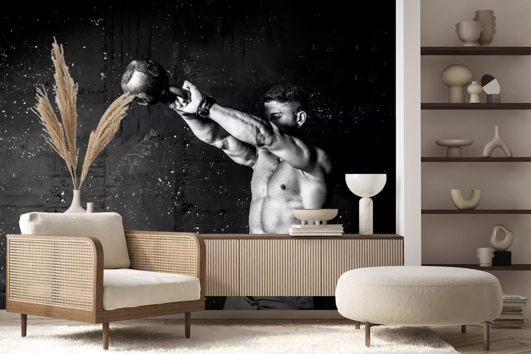 Het materiaal Premium+ is een gestructureerd vinyl op vlies met een gewicht van 255 g/m², dat kleine oneffenheden in de muur effectief camoufleert. De subtiele structuur van fijn zand geeft het oppervlak een exclusieve uitstraling, terwijl de halfmatte afwerking de diepte van de kleuren benadrukt. Het materiaal is dampdoorlatend, waardoor het ook in de keuken en badkamer kan worden gebruikt. De maximale breedte van één baan bedraagt 100 cm – bij grotere afmetingen wordt het fotobehang in meerdere gelijke banen verdeeld. De lijm wordt direct op de muur aangebracht en het behang wordt rand-aan-rand geplakt, wat zorgt voor een esthetisch resultaat zonder zichtbare naden. Het oppervlak kan gemakkelijk worden schoongemaakt door het voorzichtig af te nemen met een vochtige doek.