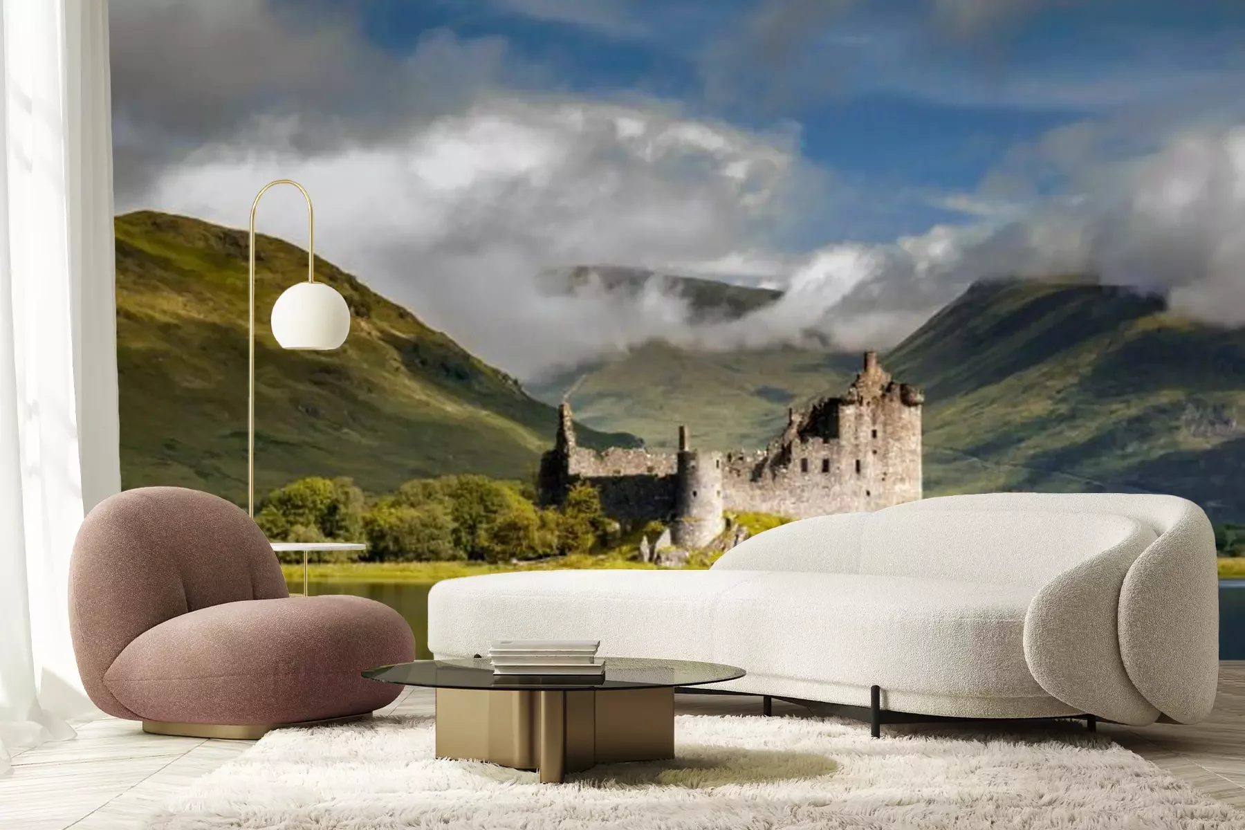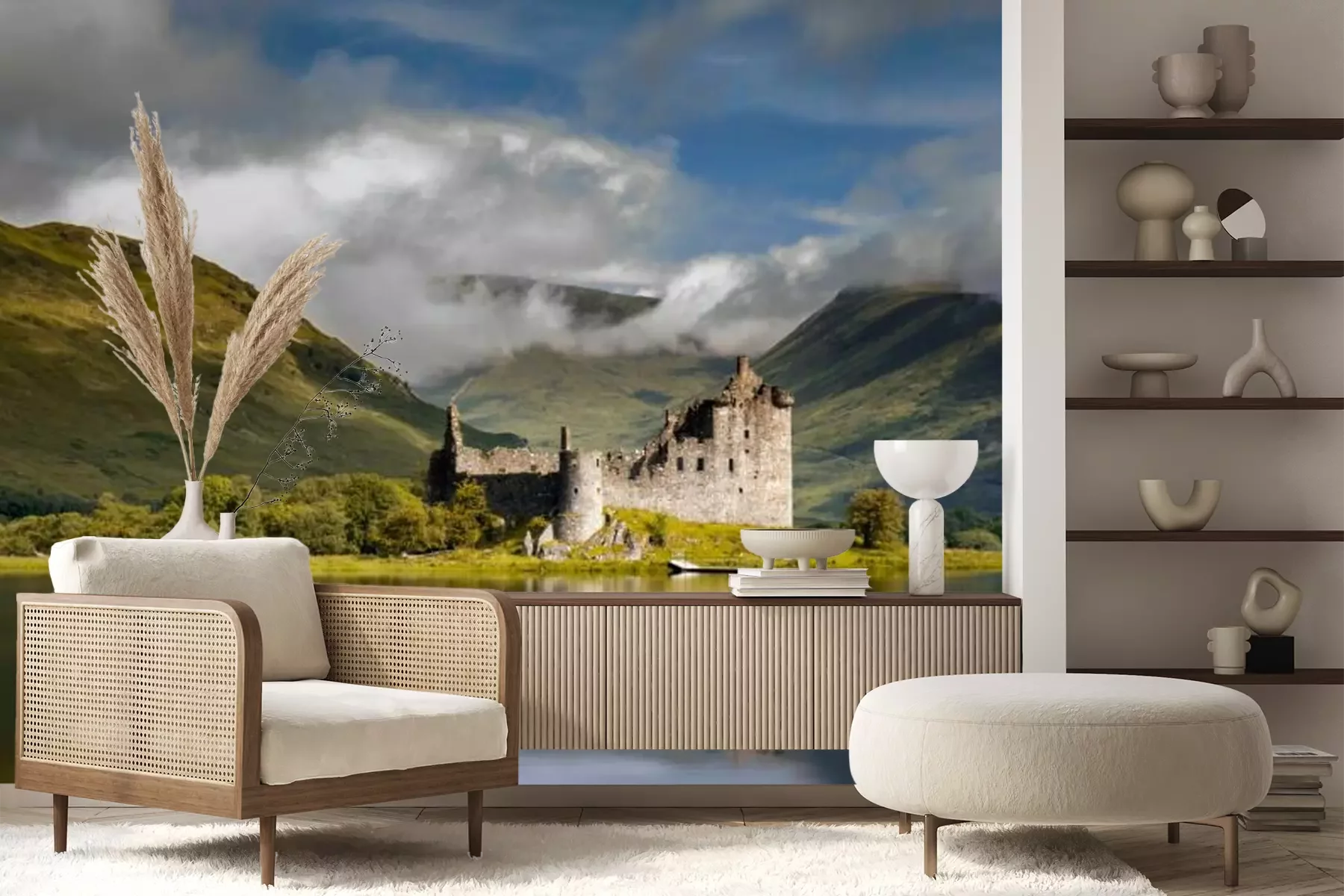 De ruïnes van een kasteel aan het meerProbleemloze bezorging verzorgd door vertrouwde vervoerders