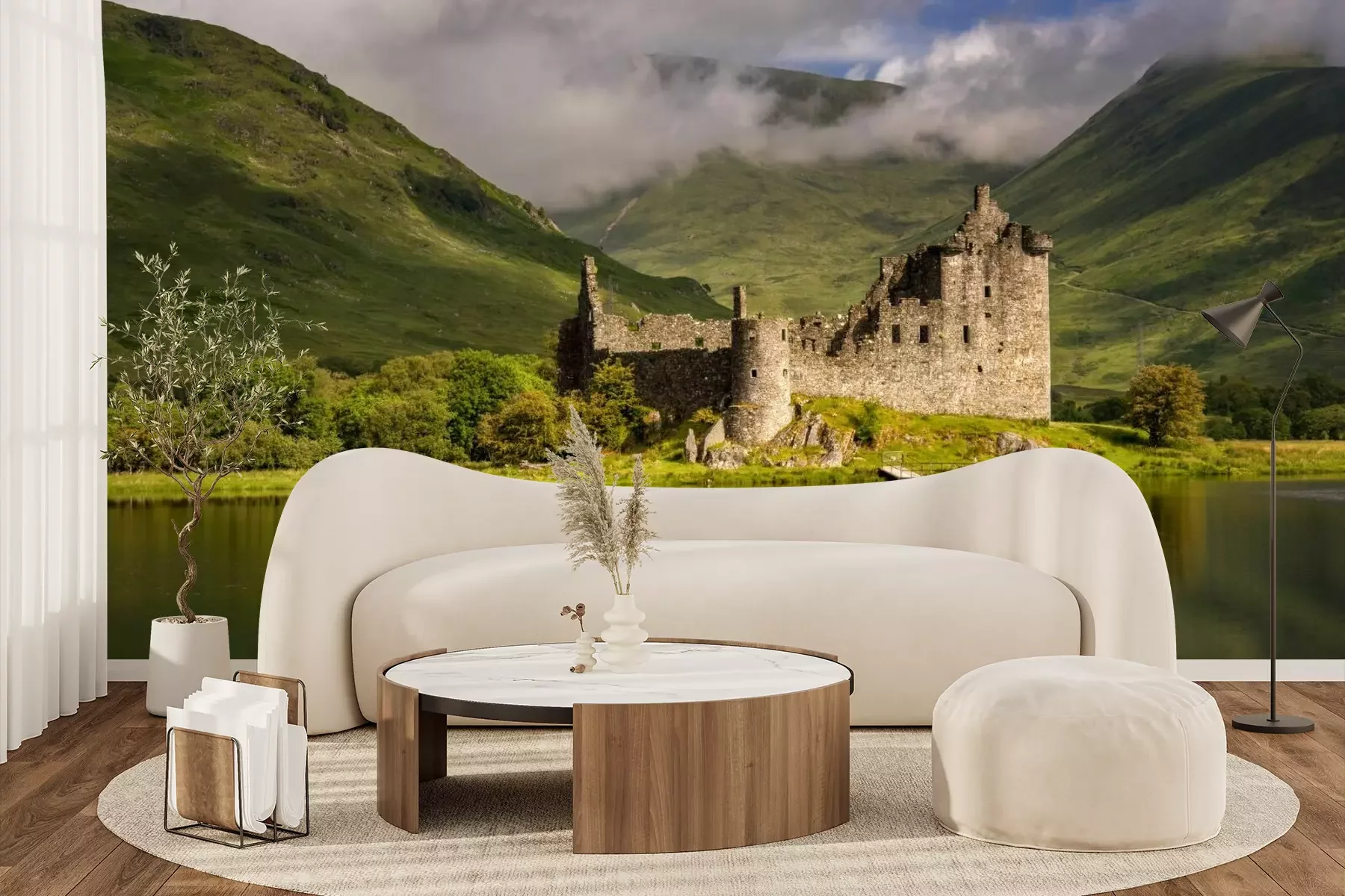De ruïnes van een kasteel aan het meerProbleemloze bezorging verzorgd door vertrouwde vervoerders