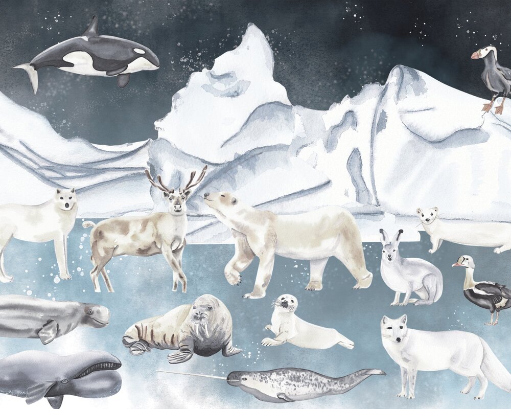 Fotobehang: Kinderpatroon dieren in een winterwonderland