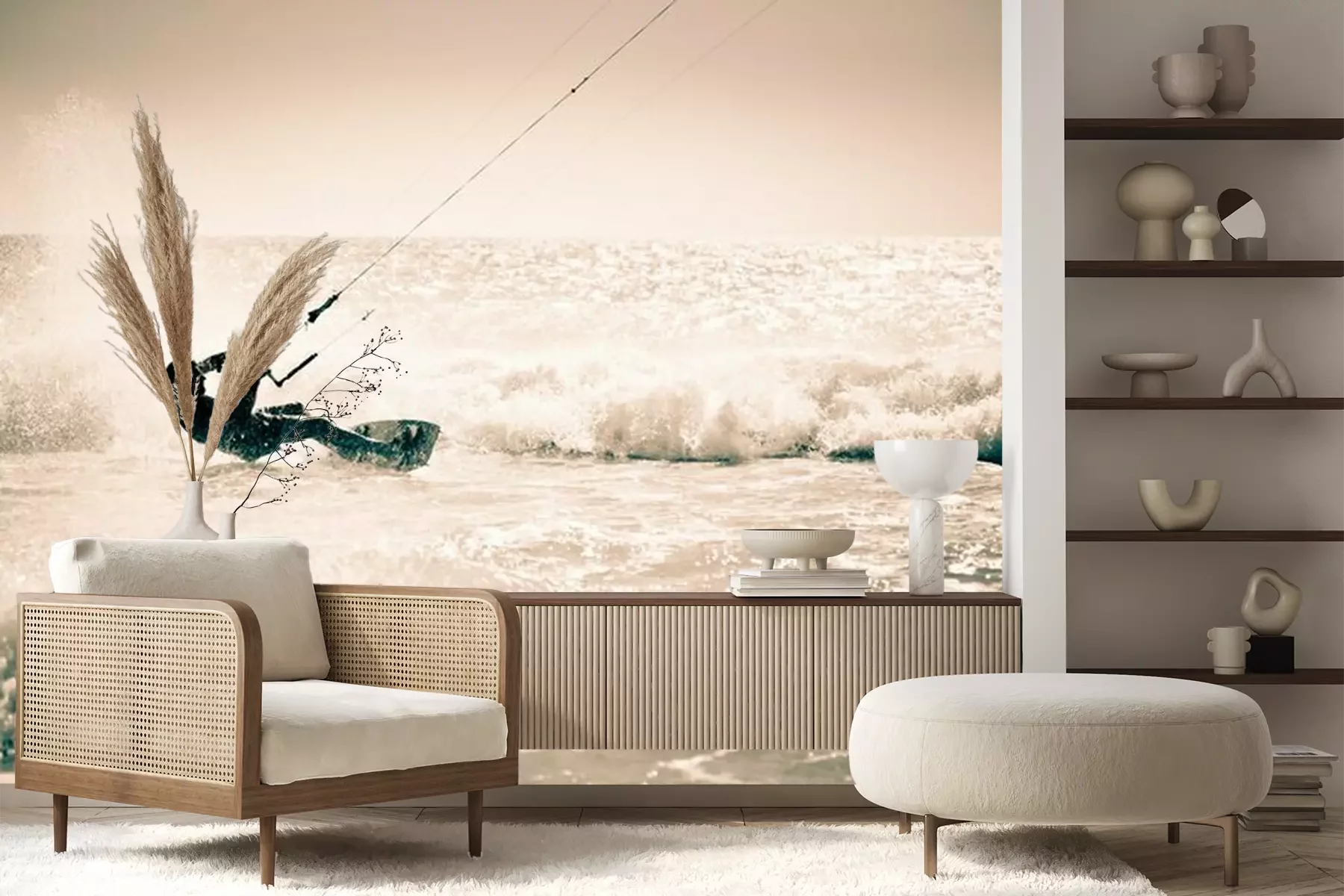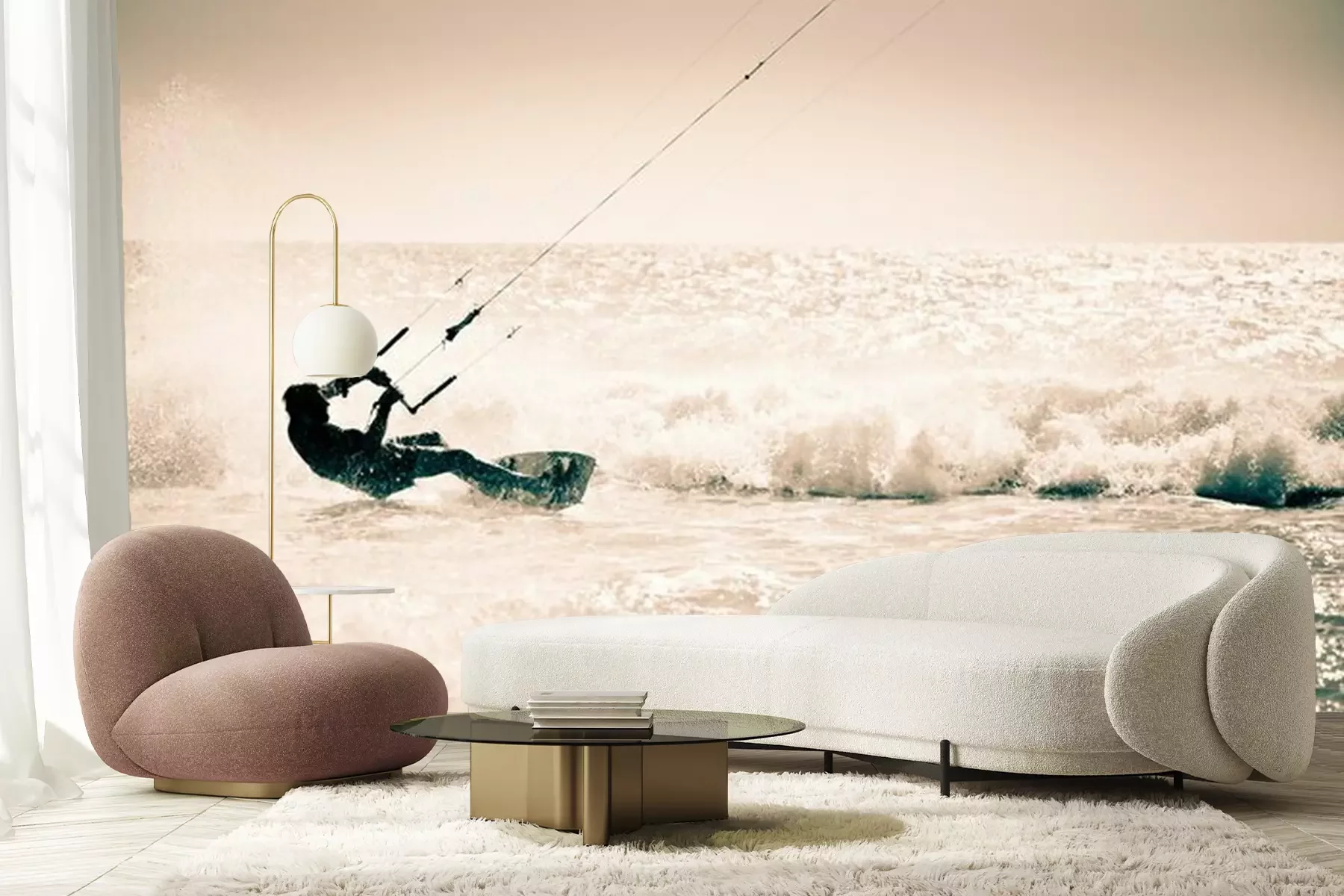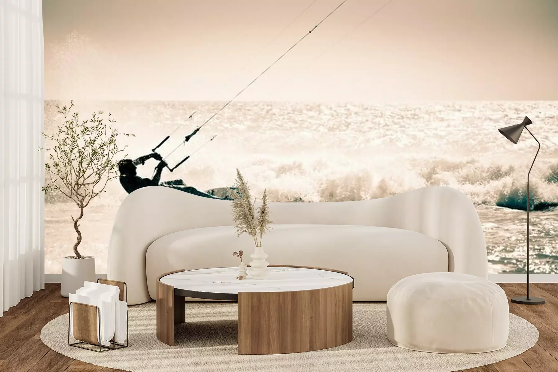 Een man die aan het kitesurfen isFotobehang