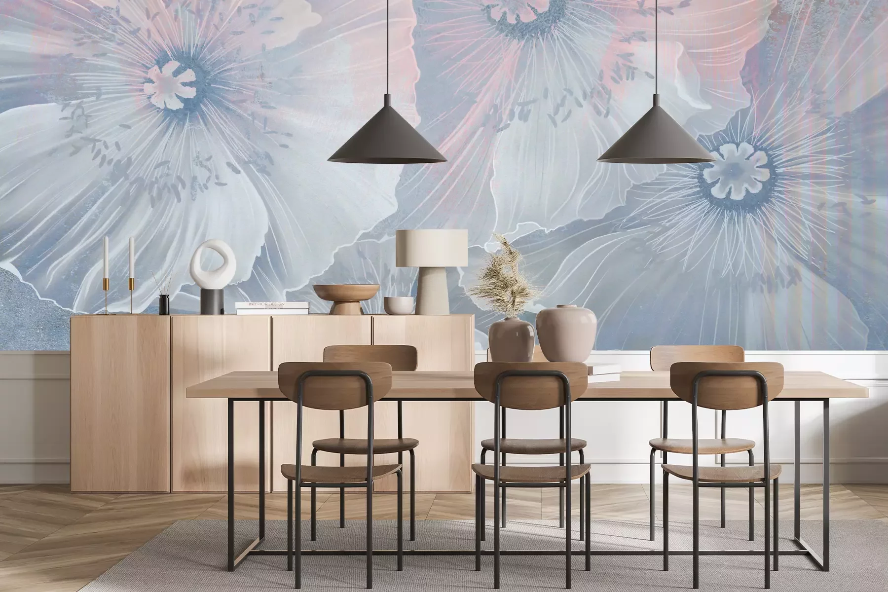 Het materiaal Standard is een hoogwaardig latexmateriaal met een glad, mat oppervlak. Dankzij de HP Latex-printtechnologie zijn de kleuren intens, duurzaam en UV-bestendig, waardoor het patroon jarenlang een onberispelijke uitstraling behoudt. Vervuilde oppervlakken kunnen voorzichtig worden afgeveegd met een droge doek. De maximale breedte van één baan bedraagt 95 cm of 105 cm – afhankelijk van de bestelde fotobehangbreedte. Bij grotere afmetingen wordt het patroon verdeeld over meerdere gelijkmatige banen. Het fotobehang wordt rand-aan-randaangebracht, wat vrijwel onzichtbare naden mogelijk maakt.