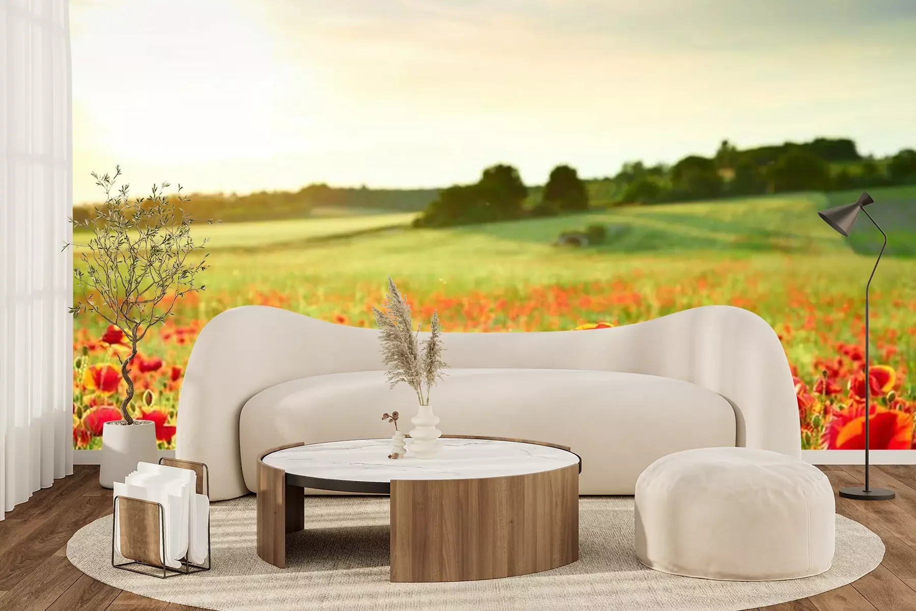 Klaprozenveld bij zonsondergangProbleemloze bezorging verzorgd door vertrouwde vervoerders