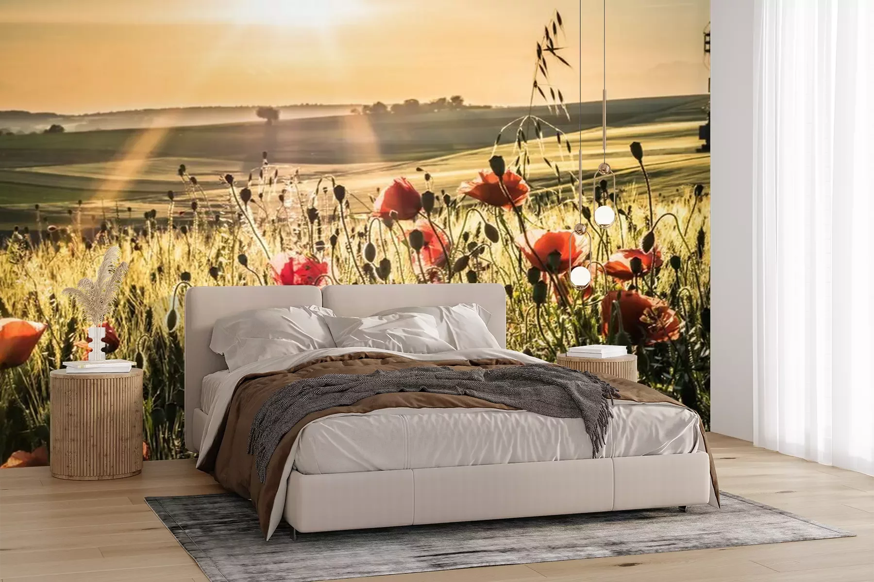 Het materiaal Premium+ is een gestructureerd vinyl op vlies met een gewicht van 255 g/m², dat kleine oneffenheden in de muur effectief camoufleert. De subtiele structuur van fijn zand geeft het oppervlak een exclusieve uitstraling, terwijl de halfmatte afwerking de diepte van de kleuren benadrukt. Het materiaal is dampdoorlatend, waardoor het ook in de keuken en badkamer kan worden gebruikt. De maximale breedte van één baan bedraagt 100 cm – bij grotere afmetingen wordt het fotobehang in meerdere gelijke banen verdeeld. De lijm wordt direct op de muur aangebracht en het behang wordt rand-aan-rand geplakt, wat zorgt voor een esthetisch resultaat zonder zichtbare naden. Het oppervlak kan gemakkelijk worden schoongemaakt door het voorzichtig af te nemen met een vochtige doek.