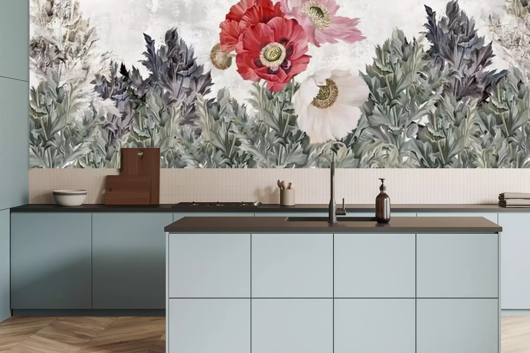 Het materiaal Premium is een glad vinyl op vlies, dat bestand is tegen uitrekken en vervorming. Het is dampdoorlatend – de muren kunnen vrij ademen – waardoor het geschikt is voor gebruik in de keuken en badkamer. Bij vervuiling kan het materiaal worden afgenomen met een vochtige doek. De maximale breedte van één baan bedraagt 95 of 105 cm, afhankelijk van de beschikbaarheid. Montage vindt plaats met de rand-aan-rand methode, wat een esthetisch resultaat zonder zichtbare naden oplevert. Omdat de lijm rechtstreeks op de muur wordt aangebracht, verloopt de installatie van het fotobehang snel en eenvoudig.