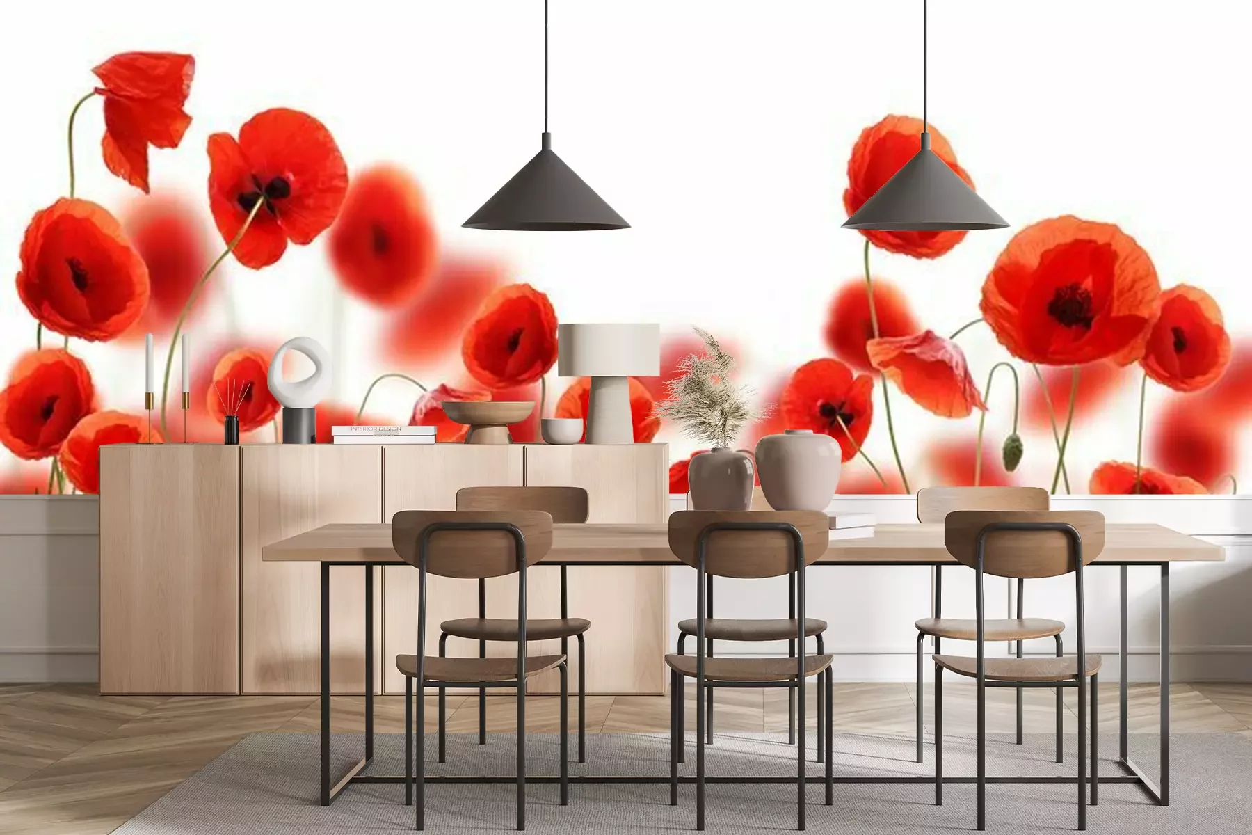 Het materiaal Standard is een hoogwaardig latexmateriaal met een glad, mat oppervlak. Dankzij de HP Latex-printtechnologie zijn de kleuren intens, duurzaam en UV-bestendig, waardoor het patroon jarenlang een onberispelijke uitstraling behoudt. Vervuilde oppervlakken kunnen voorzichtig worden afgeveegd met een droge doek. De maximale breedte van één baan bedraagt 95 cm of 105 cm – afhankelijk van de bestelde fotobehangbreedte. Bij grotere afmetingen wordt het patroon verdeeld over meerdere gelijkmatige banen. Het fotobehang wordt rand-aan-randaangebracht, wat vrijwel onzichtbare naden mogelijk maakt.