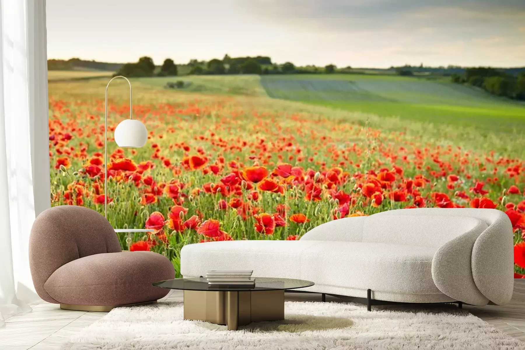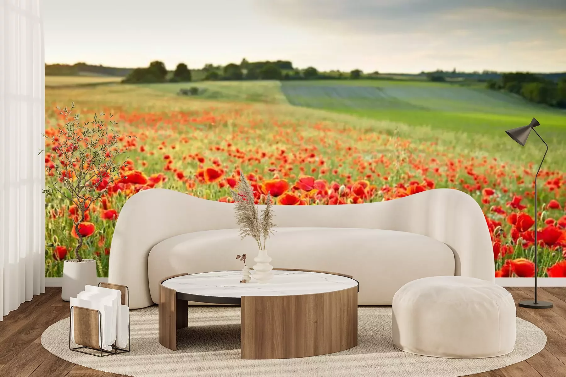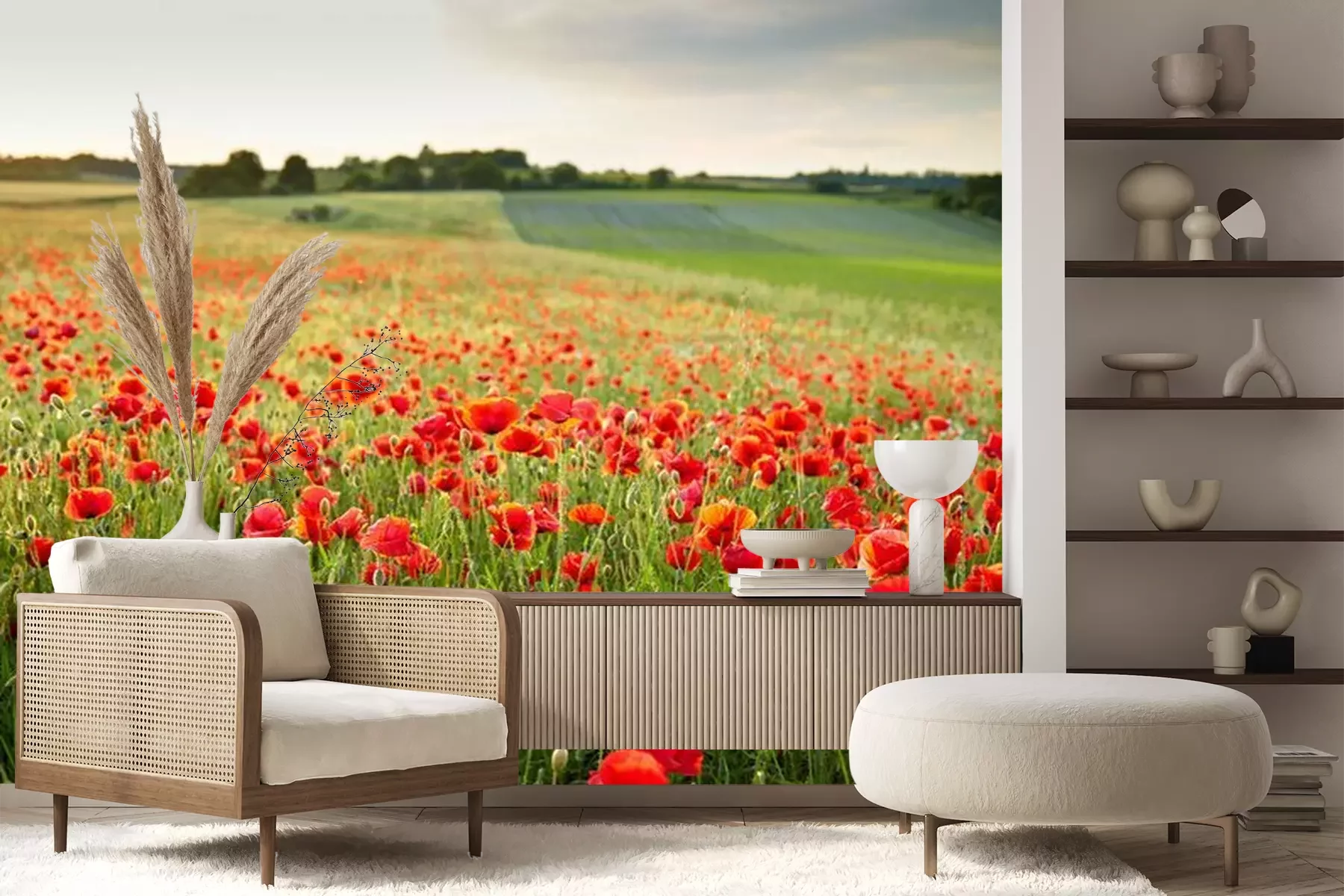 Klaprozen en landschap in de zonProbleemloze bezorging verzorgd door vertrouwde vervoerders