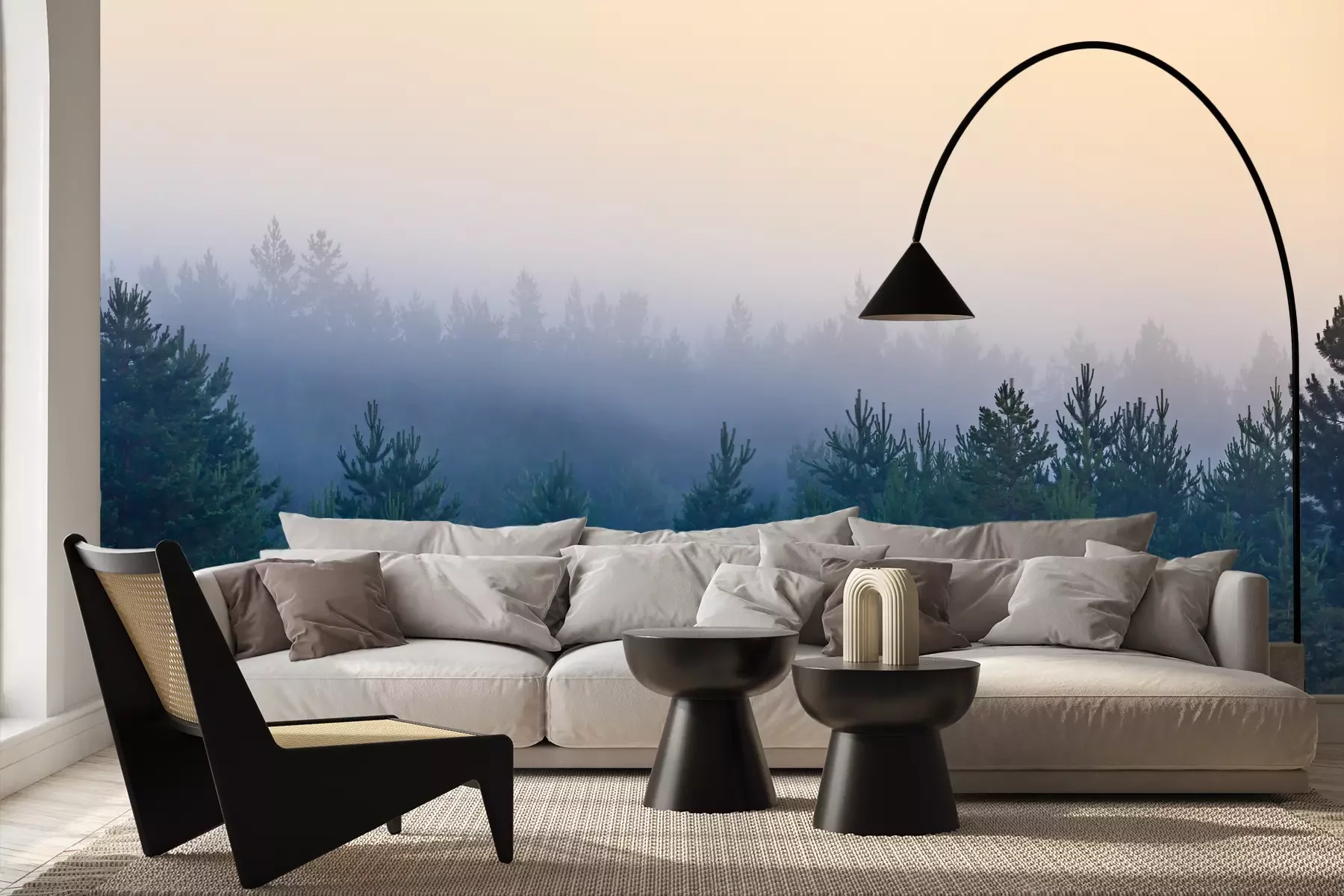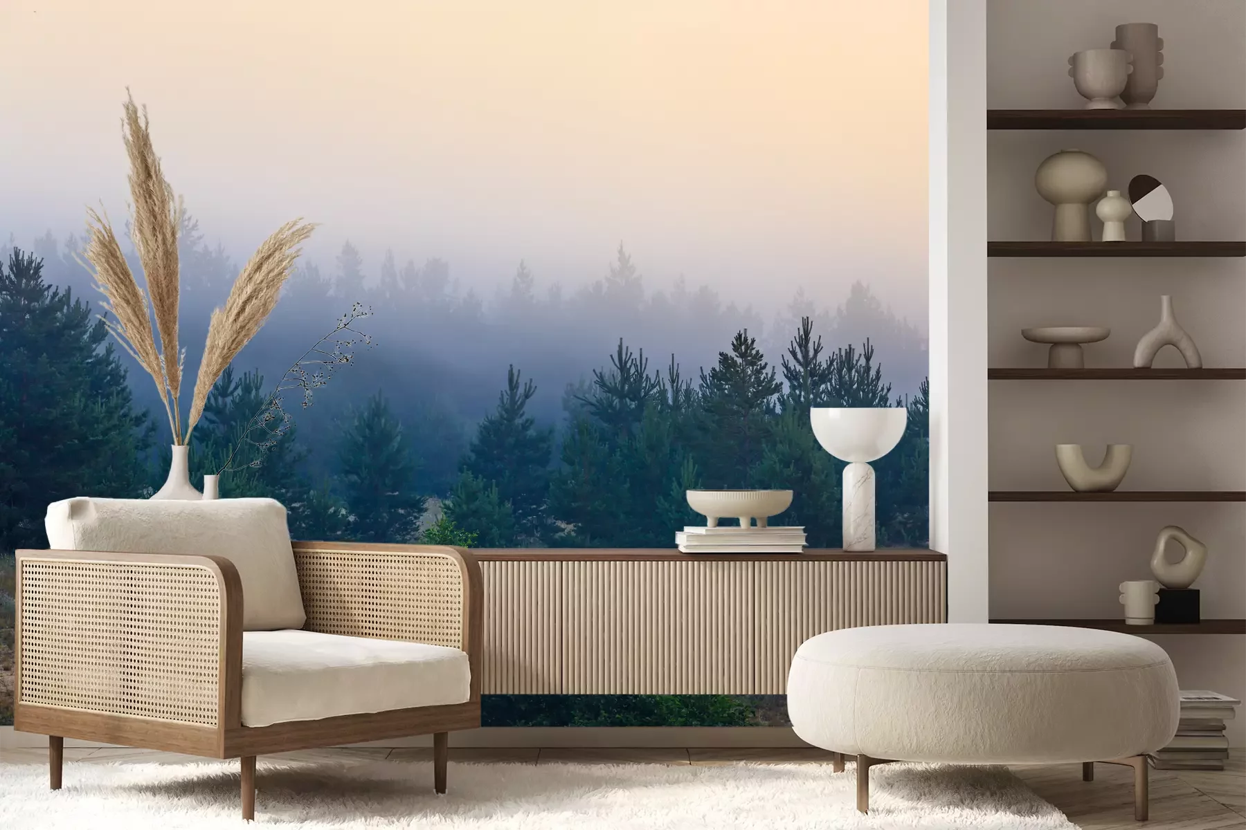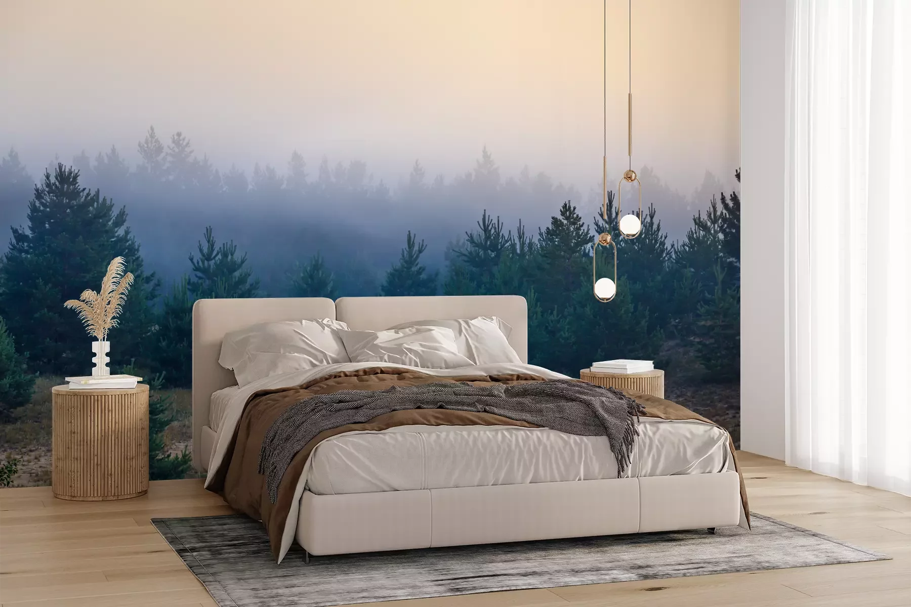 Het materiaal Premium+ is een gestructureerd vinyl op vlies met een gewicht van 255 g/m², dat kleine oneffenheden in de muur effectief camoufleert. De subtiele structuur van fijn zand geeft het oppervlak een exclusieve uitstraling, terwijl de halfmatte afwerking de diepte van de kleuren benadrukt. Het materiaal is dampdoorlatend, waardoor het ook in de keuken en badkamer kan worden gebruikt. De maximale breedte van één baan bedraagt 100 cm – bij grotere afmetingen wordt het fotobehang in meerdere gelijke banen verdeeld. De lijm wordt direct op de muur aangebracht en het behang wordt rand-aan-rand geplakt, wat zorgt voor een esthetisch resultaat zonder zichtbare naden. Het oppervlak kan gemakkelijk worden schoongemaakt door het voorzichtig af te nemen met een vochtige doek.