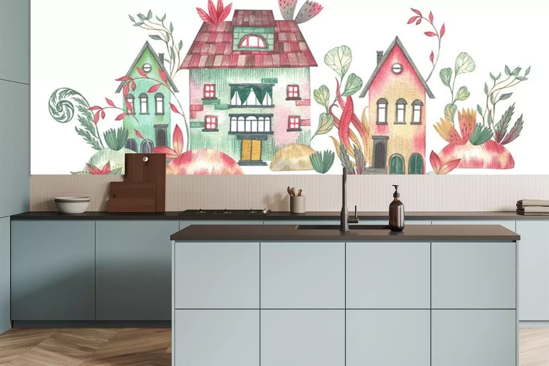 Fotobehang Kleine kleurrijke huisjes