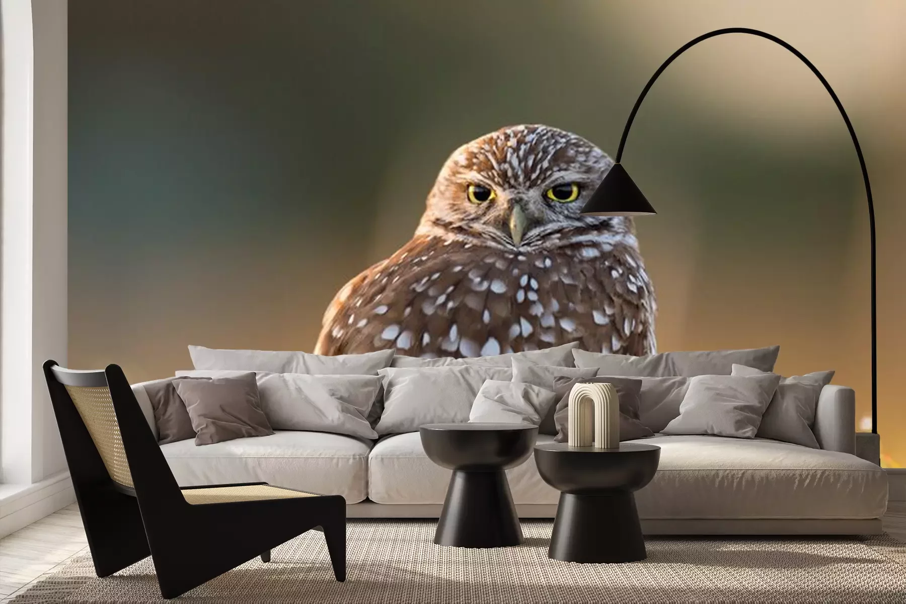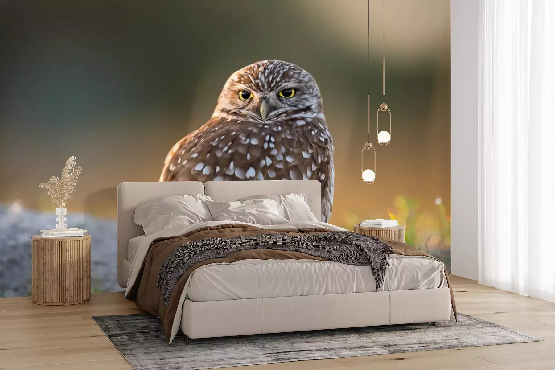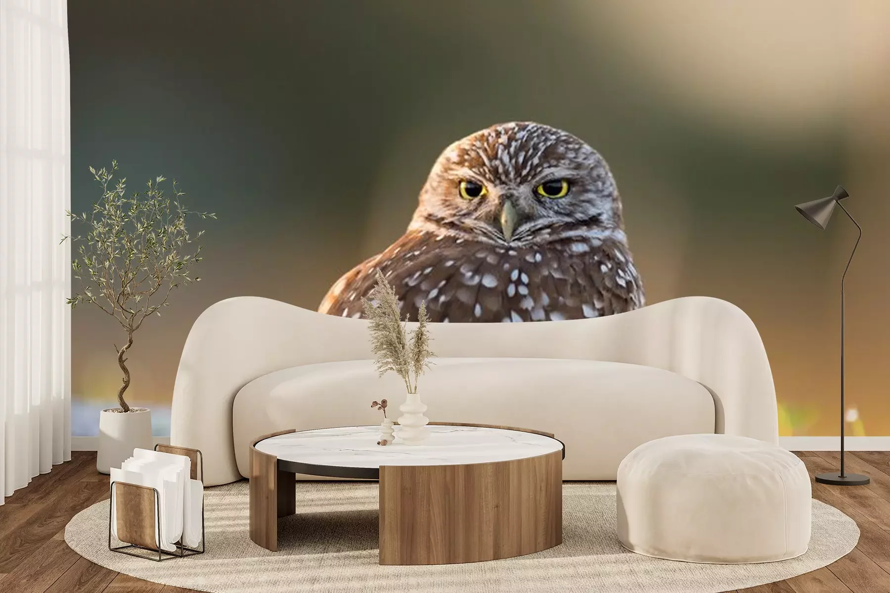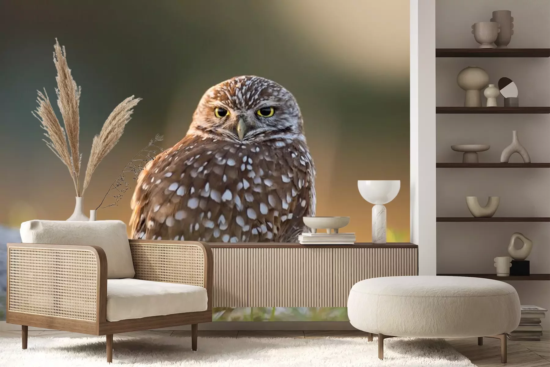 Fotobehang Kleine uil op het gras