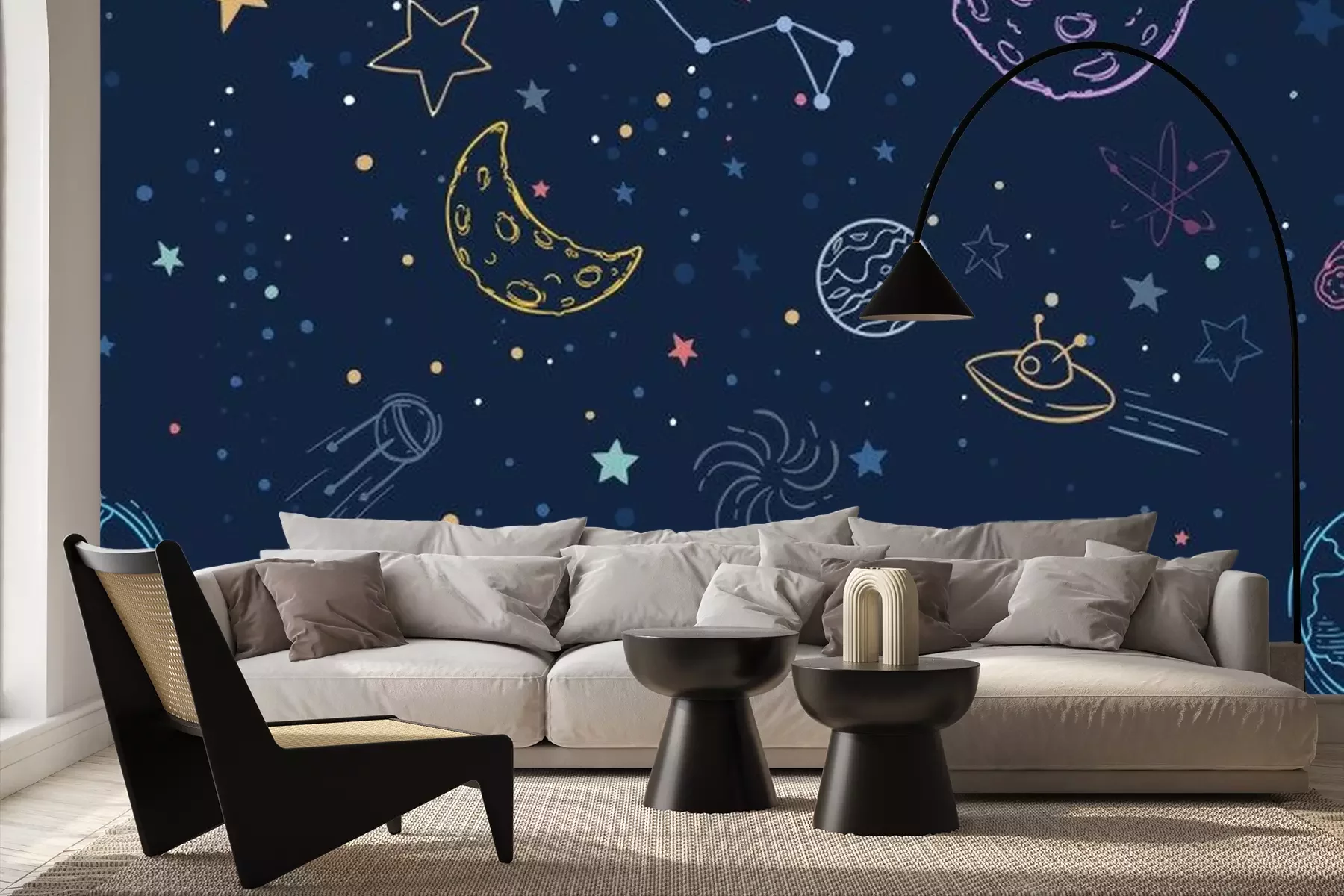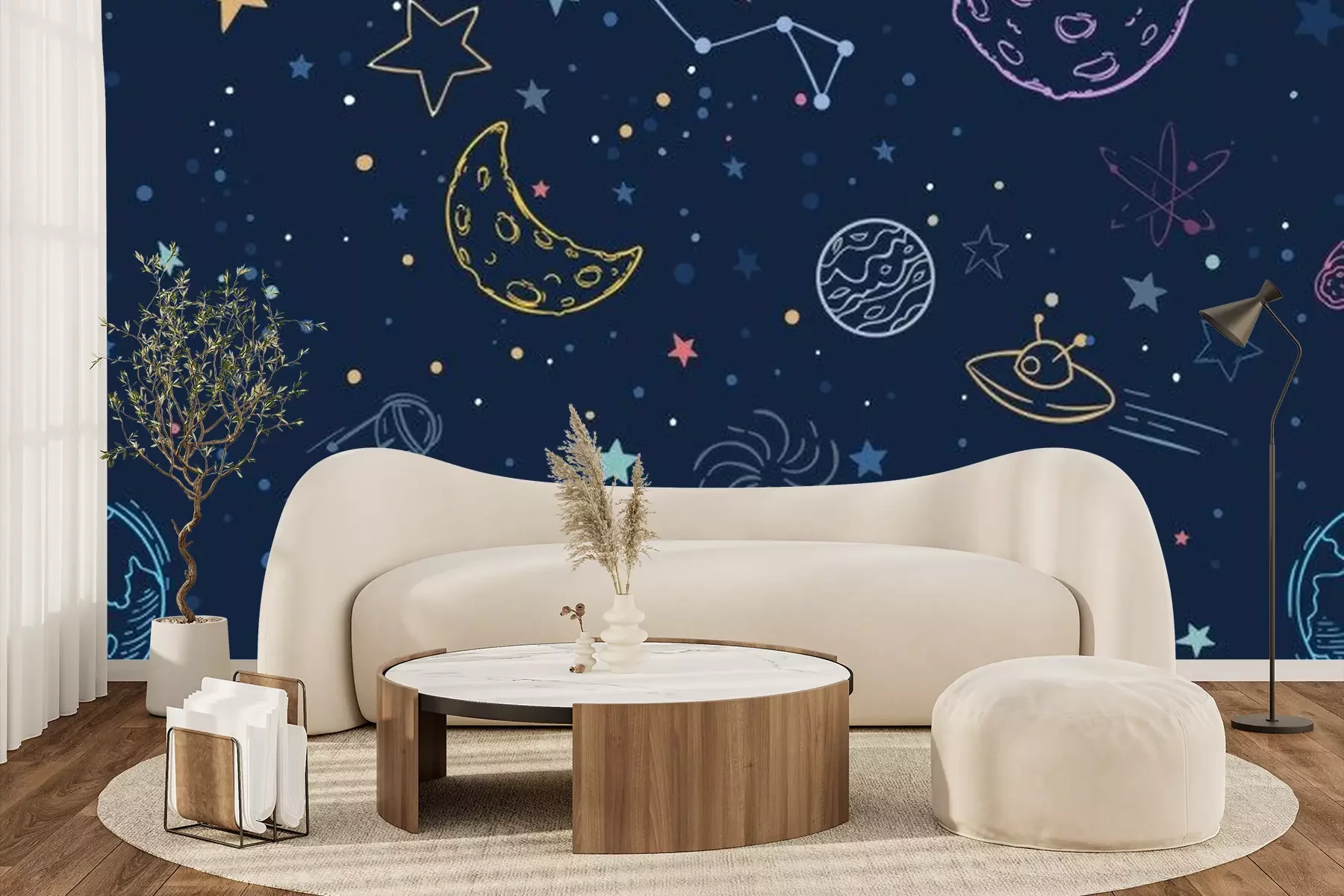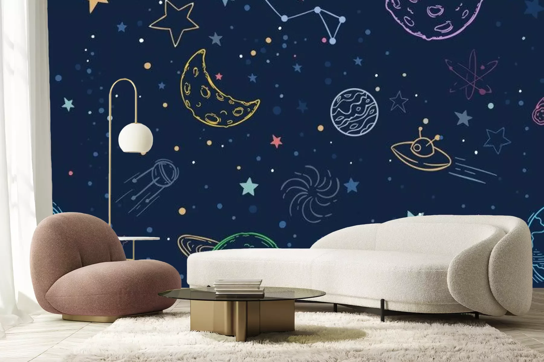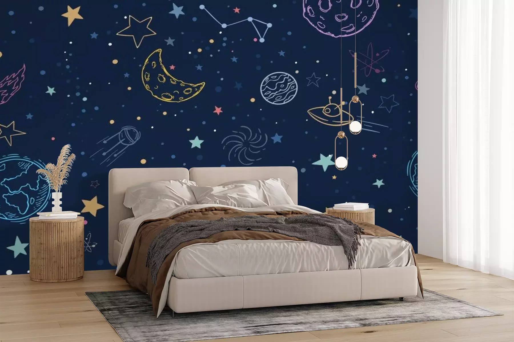 Fotobehang Kleurrijk universum met sterren en planeten