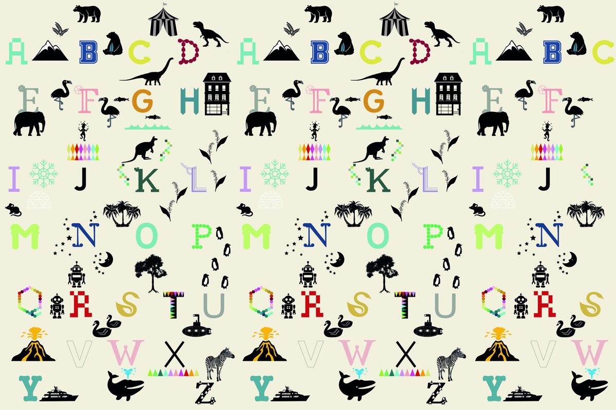 Fotobehang: Kleurrijke alfabetletters versierd met natuurmotieven