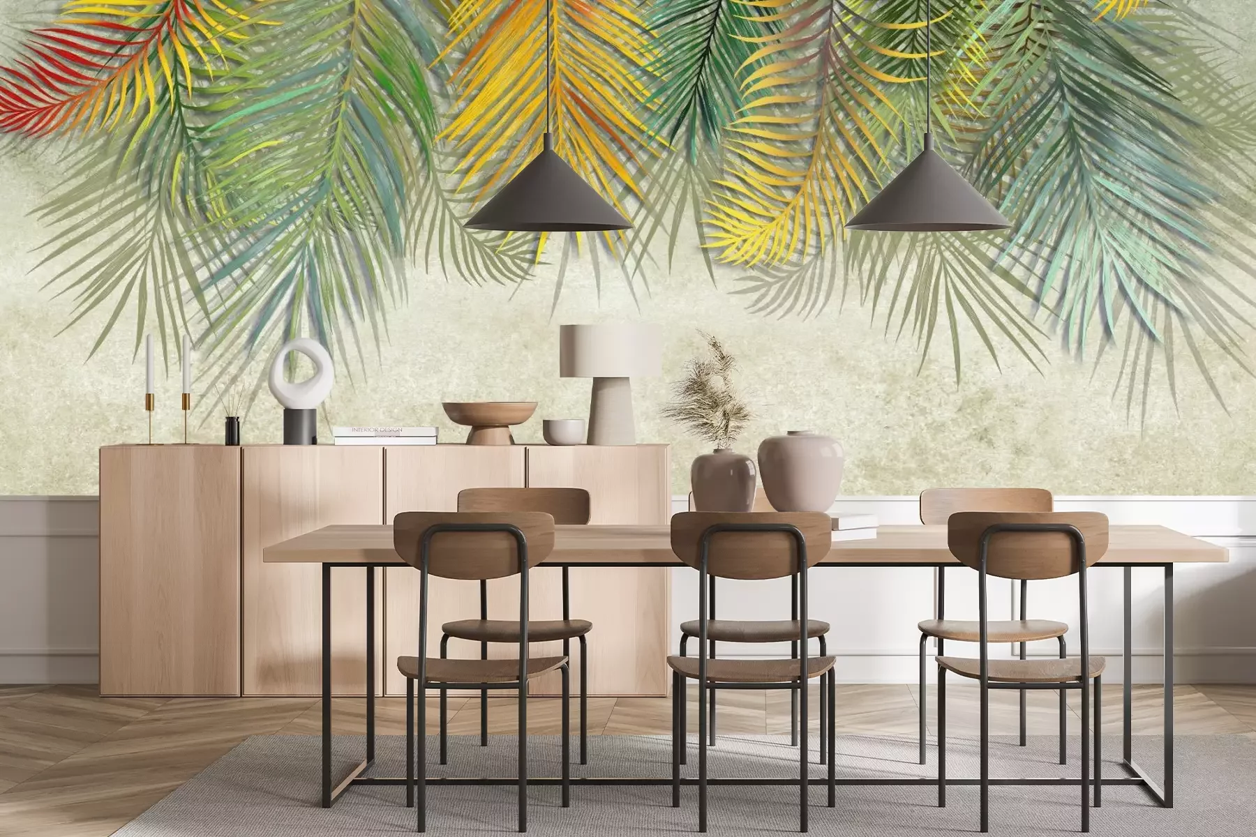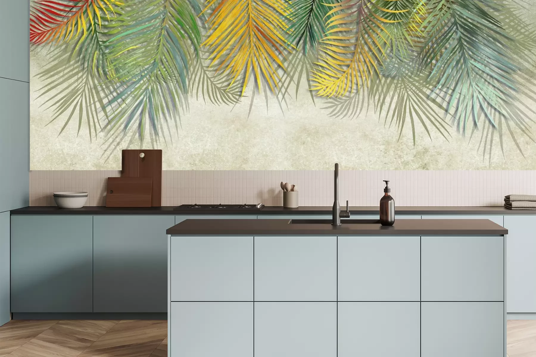 Het materiaal Premium+ is een gestructureerd vinyl op vlies met een gewicht van 255 g/m², dat kleine oneffenheden in de muur effectief camoufleert. De subtiele structuur van fijn zand geeft het oppervlak een exclusieve uitstraling, terwijl de halfmatte afwerking de diepte van de kleuren benadrukt. Het materiaal is dampdoorlatend, waardoor het ook in de keuken en badkamer kan worden gebruikt. De maximale breedte van één baan bedraagt 100 cm – bij grotere afmetingen wordt het fotobehang in meerdere gelijke banen verdeeld. De lijm wordt direct op de muur aangebracht en het behang wordt rand-aan-rand geplakt, wat zorgt voor een esthetisch resultaat zonder zichtbare naden. Het oppervlak kan gemakkelijk worden schoongemaakt door het voorzichtig af te nemen met een vochtige doek.