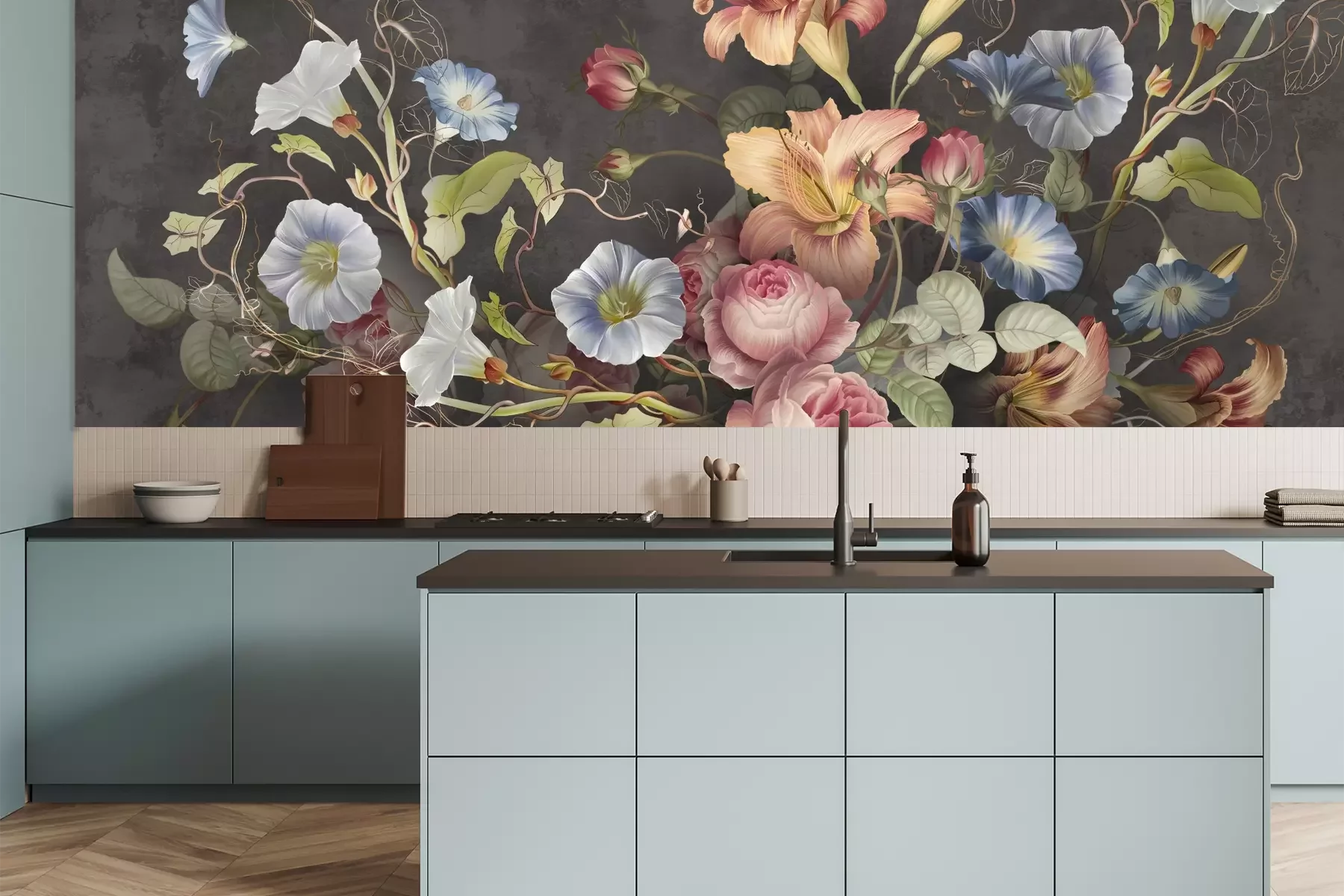 Het materiaal Premium is een glad vinyl op vlies, dat bestand is tegen uitrekken en vervorming. Het is dampdoorlatend – de muren kunnen vrij ademen – waardoor het geschikt is voor gebruik in de keuken en badkamer. Bij vervuiling kan het materiaal worden afgenomen met een vochtige doek. De maximale breedte van één baan bedraagt 95 of 105 cm, afhankelijk van de beschikbaarheid. Montage vindt plaats met de rand-aan-rand methode, wat een esthetisch resultaat zonder zichtbare naden oplevert. Omdat de lijm rechtstreeks op de muur wordt aangebracht, verloopt de installatie van het fotobehang snel en eenvoudig.