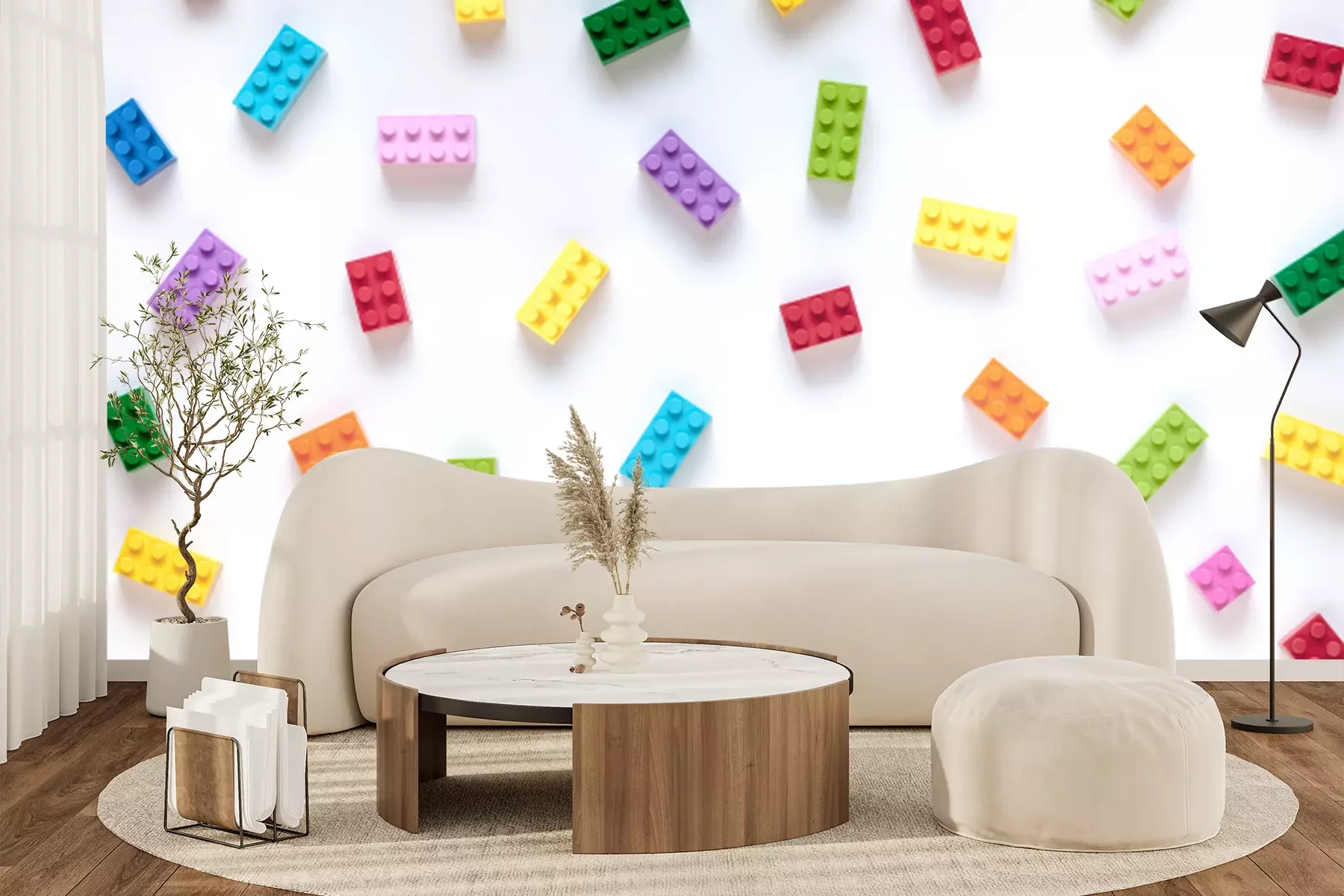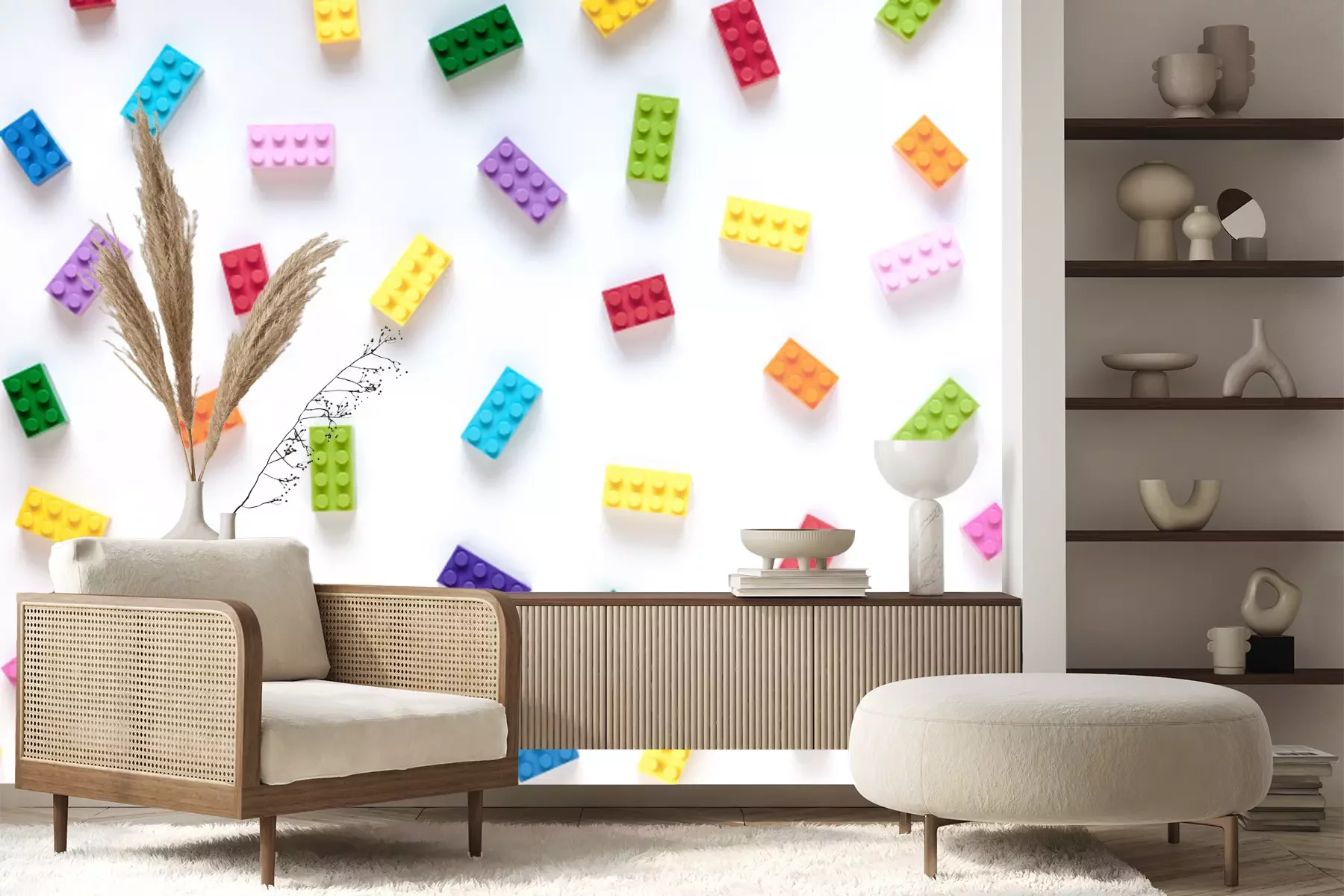 Fotobehang Kleurrijke blokken op witte achtergrond