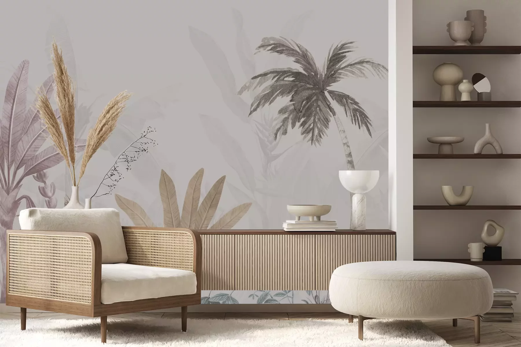 Het materiaal Premium+ is een gestructureerd vinyl op vlies met een gewicht van 255 g/m², dat kleine oneffenheden in de muur effectief camoufleert. De subtiele structuur van fijn zand geeft het oppervlak een exclusieve uitstraling, terwijl de halfmatte afwerking de diepte van de kleuren benadrukt. Het materiaal is dampdoorlatend, waardoor het ook in de keuken en badkamer kan worden gebruikt. De maximale breedte van één baan bedraagt 100 cm – bij grotere afmetingen wordt het fotobehang in meerdere gelijke banen verdeeld. De lijm wordt direct op de muur aangebracht en het behang wordt rand-aan-rand geplakt, wat zorgt voor een esthetisch resultaat zonder zichtbare naden. Het oppervlak kan gemakkelijk worden schoongemaakt door het voorzichtig af te nemen met een vochtige doek.