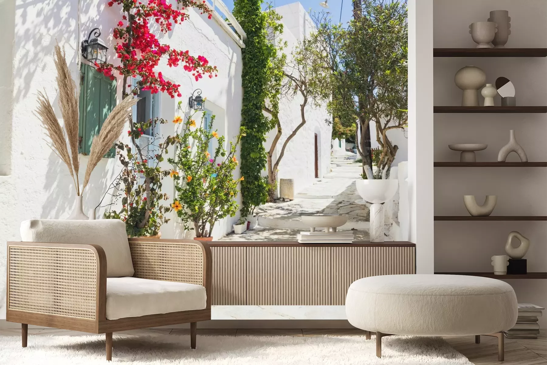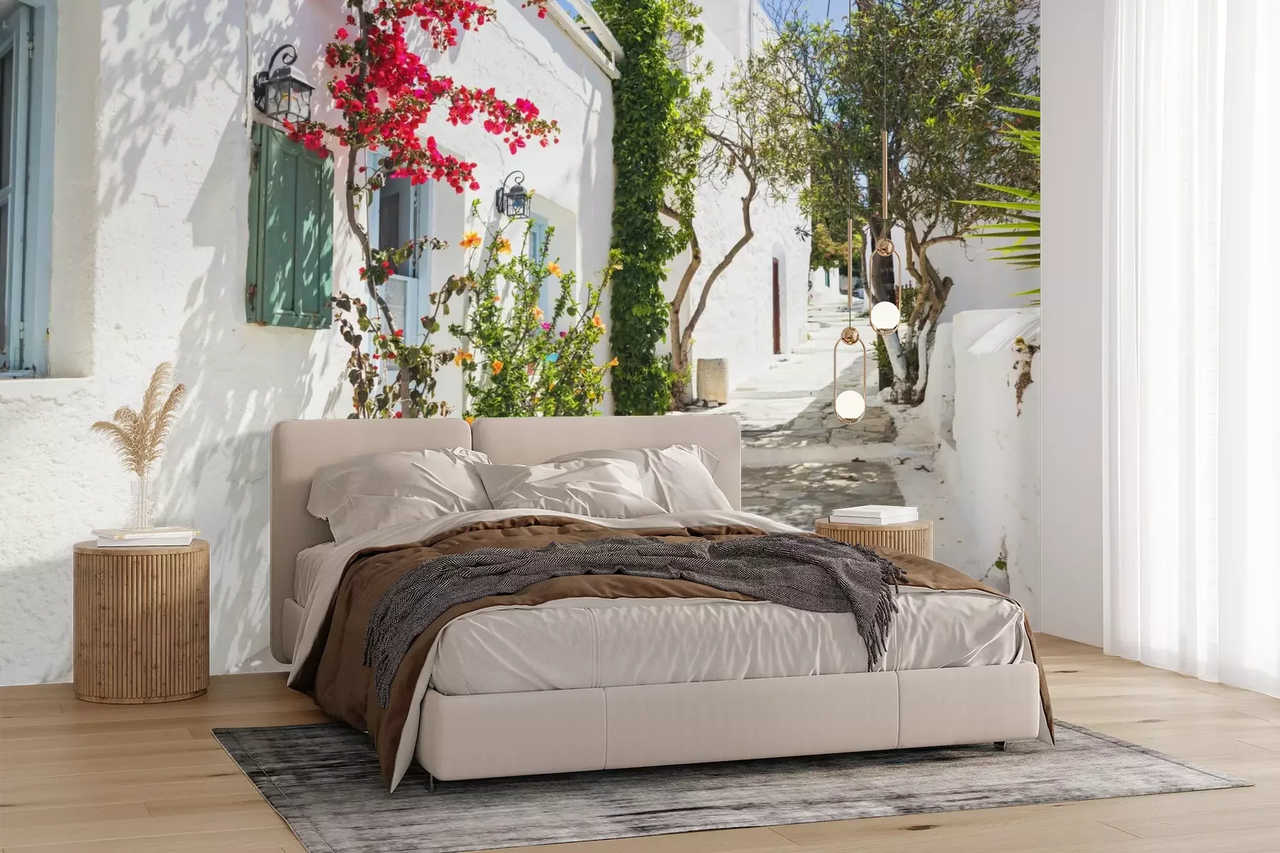 Het materiaal Premium+ is een gestructureerd vinyl op vlies met een gewicht van 255 g/m², dat kleine oneffenheden in de muur effectief camoufleert. De subtiele structuur van fijn zand geeft het oppervlak een exclusieve uitstraling, terwijl de halfmatte afwerking de diepte van de kleuren benadrukt. Het materiaal is dampdoorlatend, waardoor het ook in de keuken en badkamer kan worden gebruikt. De maximale breedte van één baan bedraagt 100 cm – bij grotere afmetingen wordt het fotobehang in meerdere gelijke banen verdeeld. De lijm wordt direct op de muur aangebracht en het behang wordt rand-aan-rand geplakt, wat zorgt voor een esthetisch resultaat zonder zichtbare naden. Het oppervlak kan gemakkelijk worden schoongemaakt door het voorzichtig af te nemen met een vochtige doek.