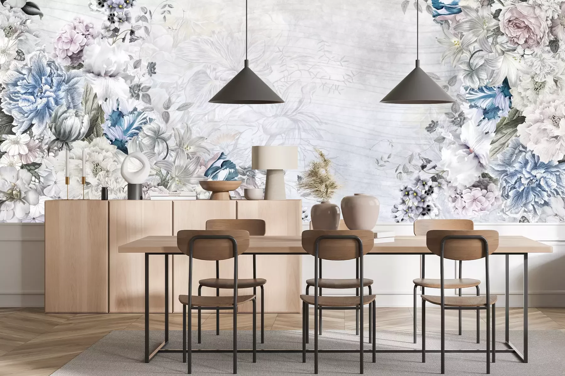 Het materiaal Standard is een hoogwaardig latexmateriaal met een glad, mat oppervlak. Dankzij de HP Latex-printtechnologie zijn de kleuren intens, duurzaam en UV-bestendig, waardoor het patroon jarenlang een onberispelijke uitstraling behoudt. Vervuilde oppervlakken kunnen voorzichtig worden afgeveegd met een droge doek. De maximale breedte van één baan bedraagt 95 cm of 105 cm – afhankelijk van de bestelde fotobehangbreedte. Bij grotere afmetingen wordt het patroon verdeeld over meerdere gelijkmatige banen. Het fotobehang wordt rand-aan-randaangebracht, wat vrijwel onzichtbare naden mogelijk maakt.