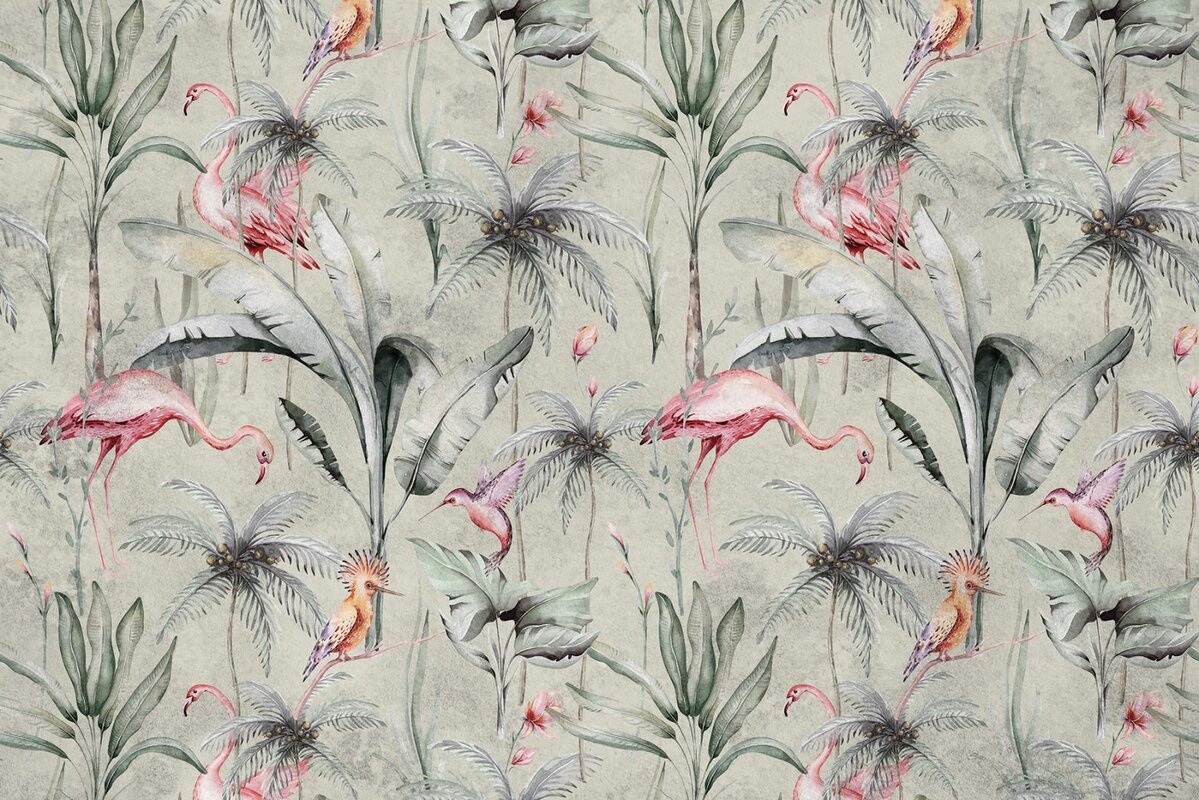 Fotobehang: Kleurrijke vogels in tropische vegetatie
