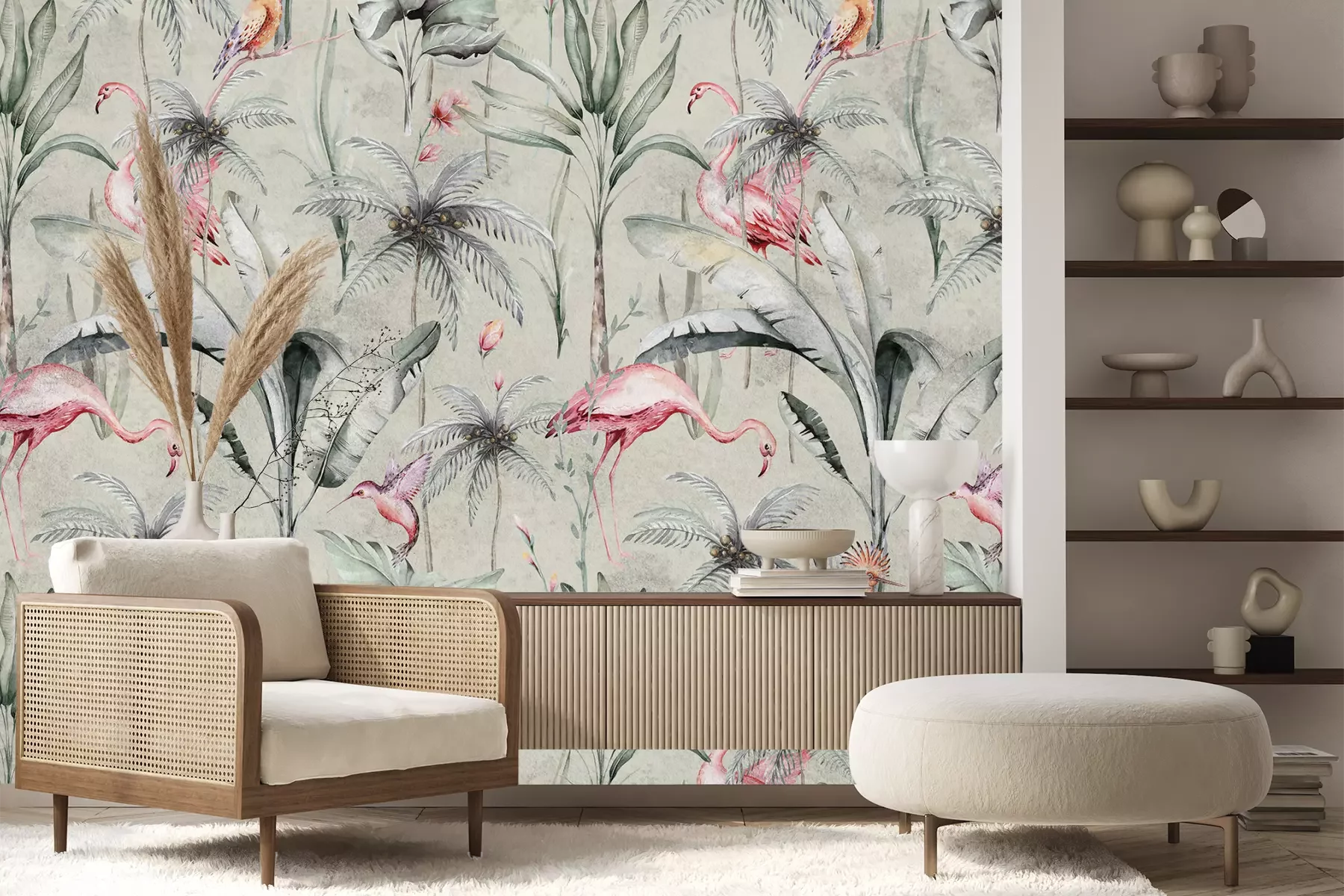 Het materiaal Premium+ is een gestructureerd vinyl op vlies met een gewicht van 255 g/m², dat kleine oneffenheden in de muur effectief camoufleert. De subtiele structuur van fijn zand geeft het oppervlak een exclusieve uitstraling, terwijl de halfmatte afwerking de diepte van de kleuren benadrukt. Het materiaal is dampdoorlatend, waardoor het ook in de keuken en badkamer kan worden gebruikt. De maximale breedte van één baan bedraagt 100 cm – bij grotere afmetingen wordt het fotobehang in meerdere gelijke banen verdeeld. De lijm wordt direct op de muur aangebracht en het behang wordt rand-aan-rand geplakt, wat zorgt voor een esthetisch resultaat zonder zichtbare naden. Het oppervlak kan gemakkelijk worden schoongemaakt door het voorzichtig af te nemen met een vochtige doek.