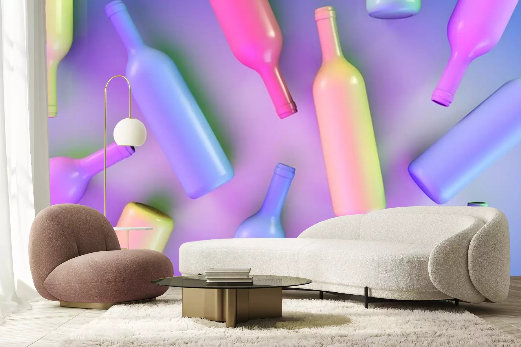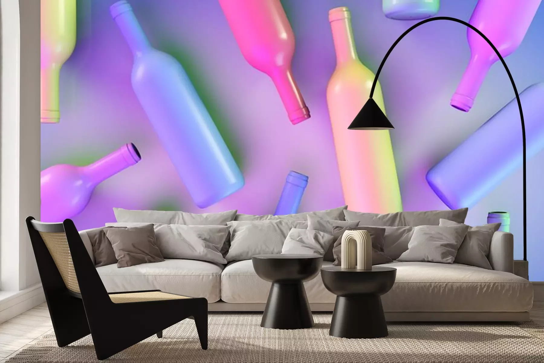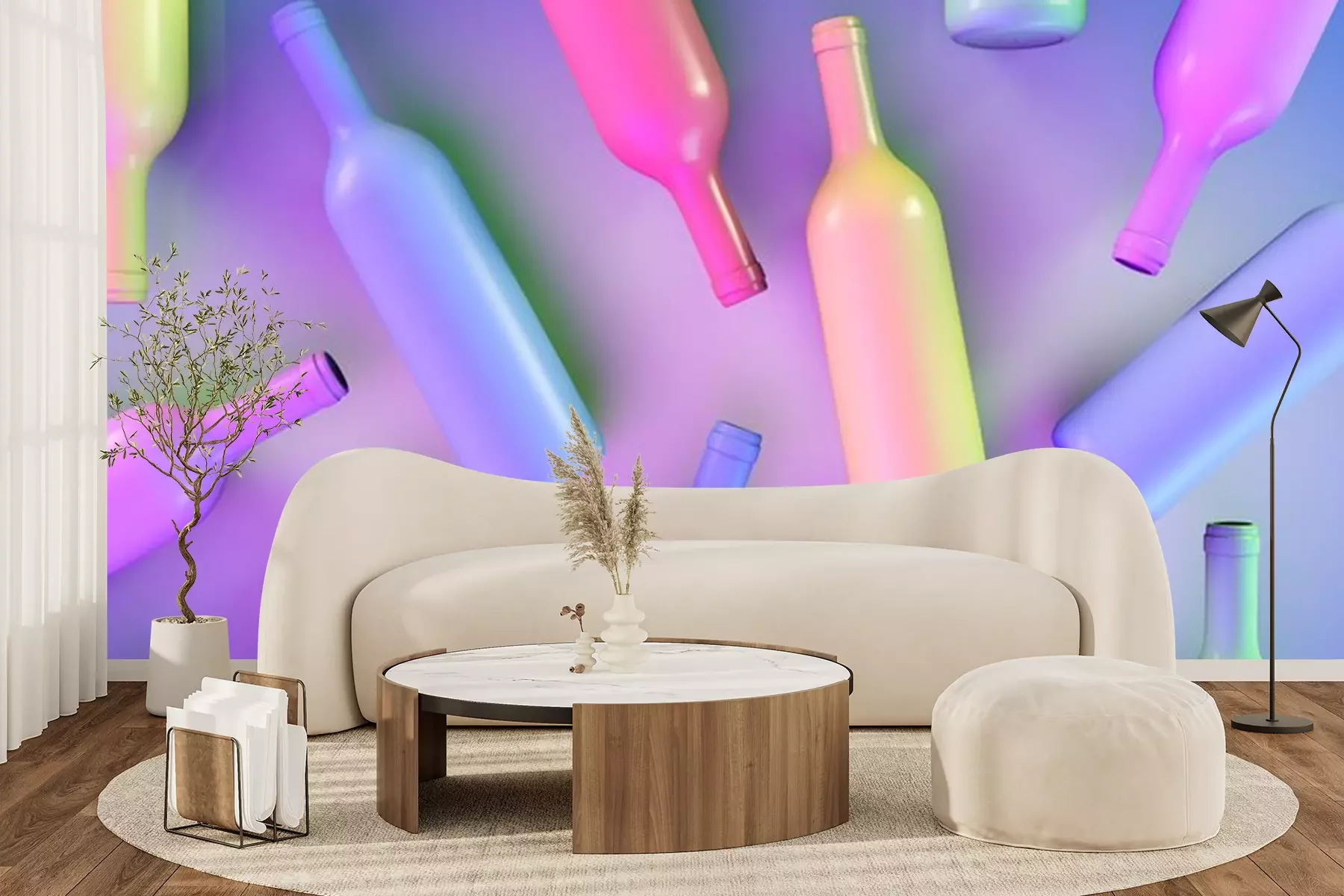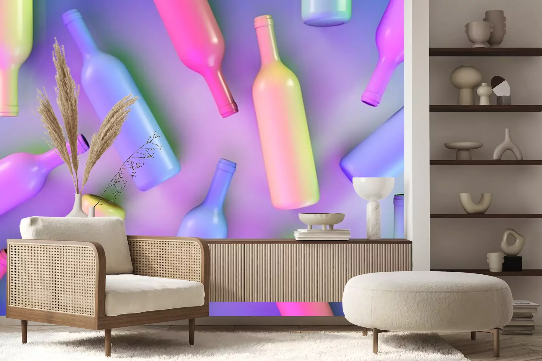 Fotobehang Kleurrijke wijnflessen