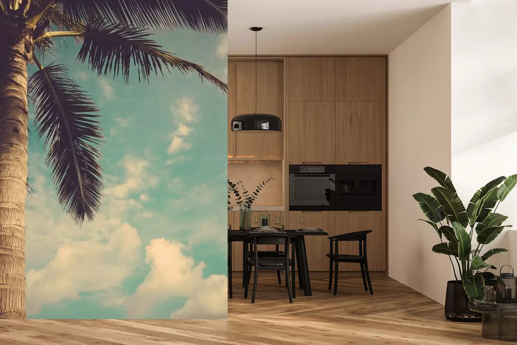 Het materiaal Premium+ is een gestructureerd vinyl op vlies met een gewicht van 255 g/m², dat kleine oneffenheden in de muur effectief camoufleert. De subtiele structuur van fijn zand geeft het oppervlak een exclusieve uitstraling, terwijl de halfmatte afwerking de diepte van de kleuren benadrukt. Het materiaal is dampdoorlatend, waardoor het ook in de keuken en badkamer kan worden gebruikt. De maximale breedte van één baan bedraagt 100 cm – bij grotere afmetingen wordt het fotobehang in meerdere gelijke banen verdeeld. De lijm wordt direct op de muur aangebracht en het behang wordt rand-aan-rand geplakt, wat zorgt voor een esthetisch resultaat zonder zichtbare naden. Het oppervlak kan gemakkelijk worden schoongemaakt door het voorzichtig af te nemen met een vochtige doek.