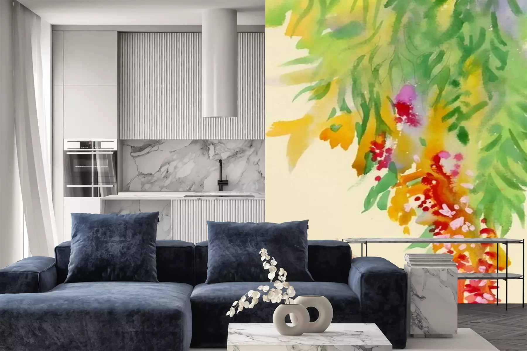 Het materiaal Premium+ is een gestructureerd vinyl op vlies met een gewicht van 255 g/m², dat kleine oneffenheden in de muur effectief camoufleert. De subtiele structuur van fijn zand geeft het oppervlak een exclusieve uitstraling, terwijl de halfmatte afwerking de diepte van de kleuren benadrukt. Het materiaal is dampdoorlatend, waardoor het ook in de keuken en badkamer kan worden gebruikt. De maximale breedte van één baan bedraagt 100 cm – bij grotere afmetingen wordt het fotobehang in meerdere gelijke banen verdeeld. De lijm wordt direct op de muur aangebracht en het behang wordt rand-aan-rand geplakt, wat zorgt voor een esthetisch resultaat zonder zichtbare naden. Het oppervlak kan gemakkelijk worden schoongemaakt door het voorzichtig af te nemen met een vochtige doek.