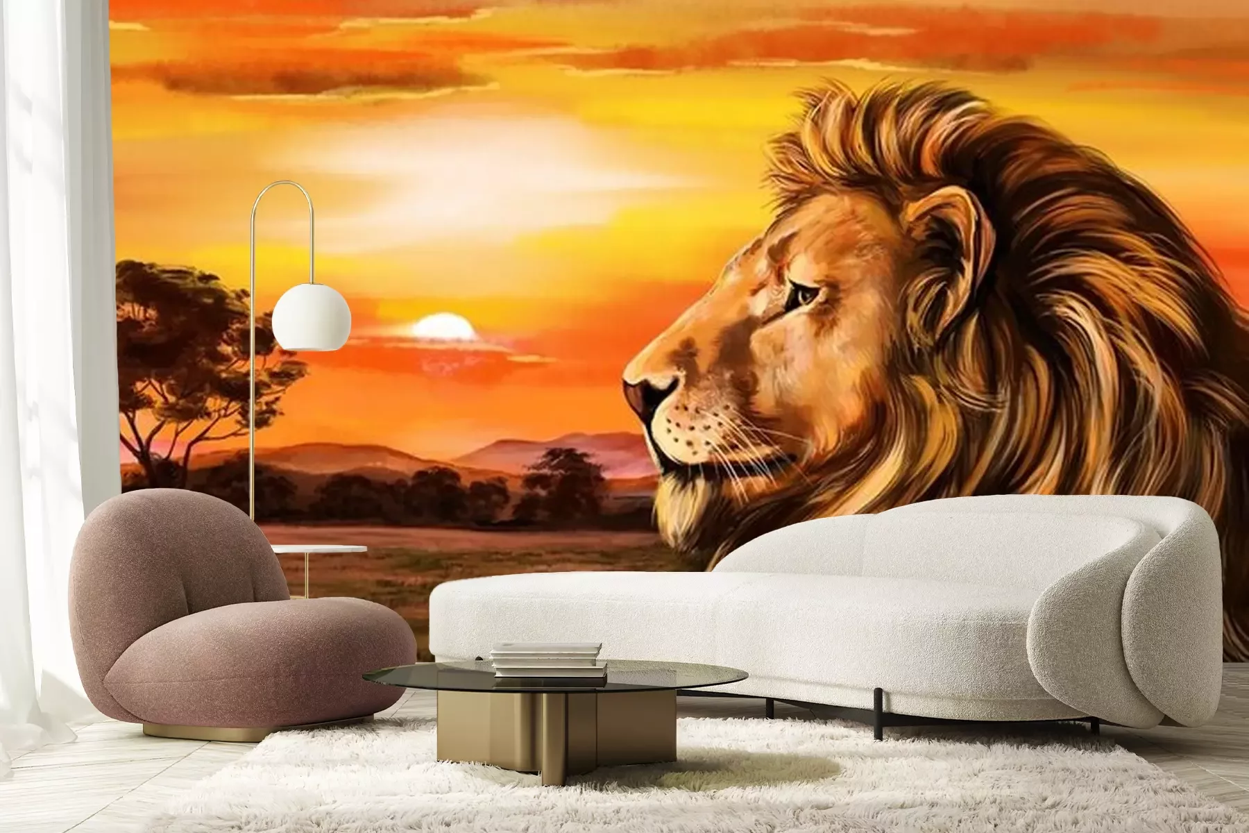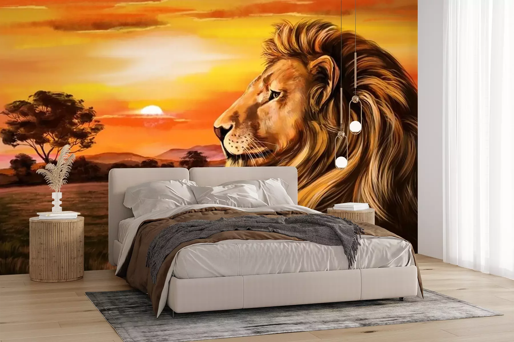 Fotobehang Koning der dieren tegen prachtige zonsondergang