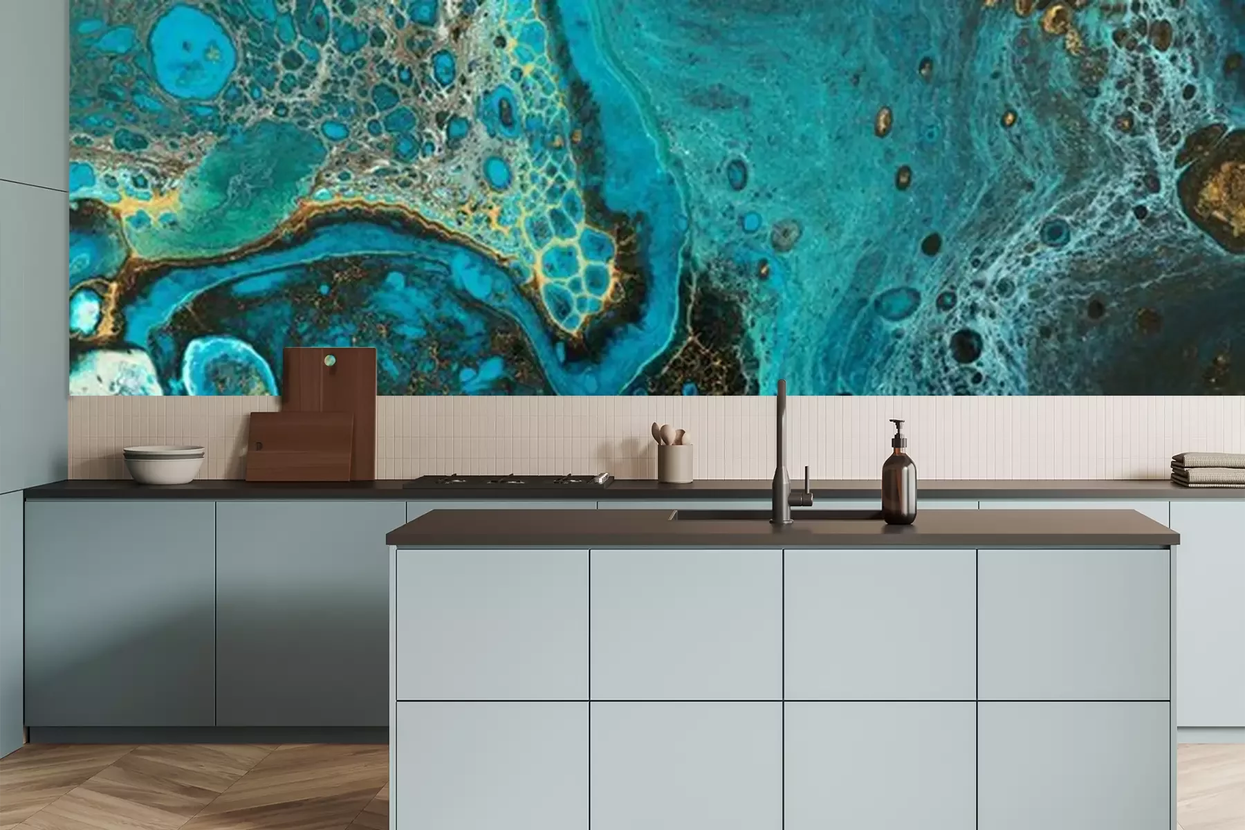 Fotobehang Kosmisch turquoise marmer