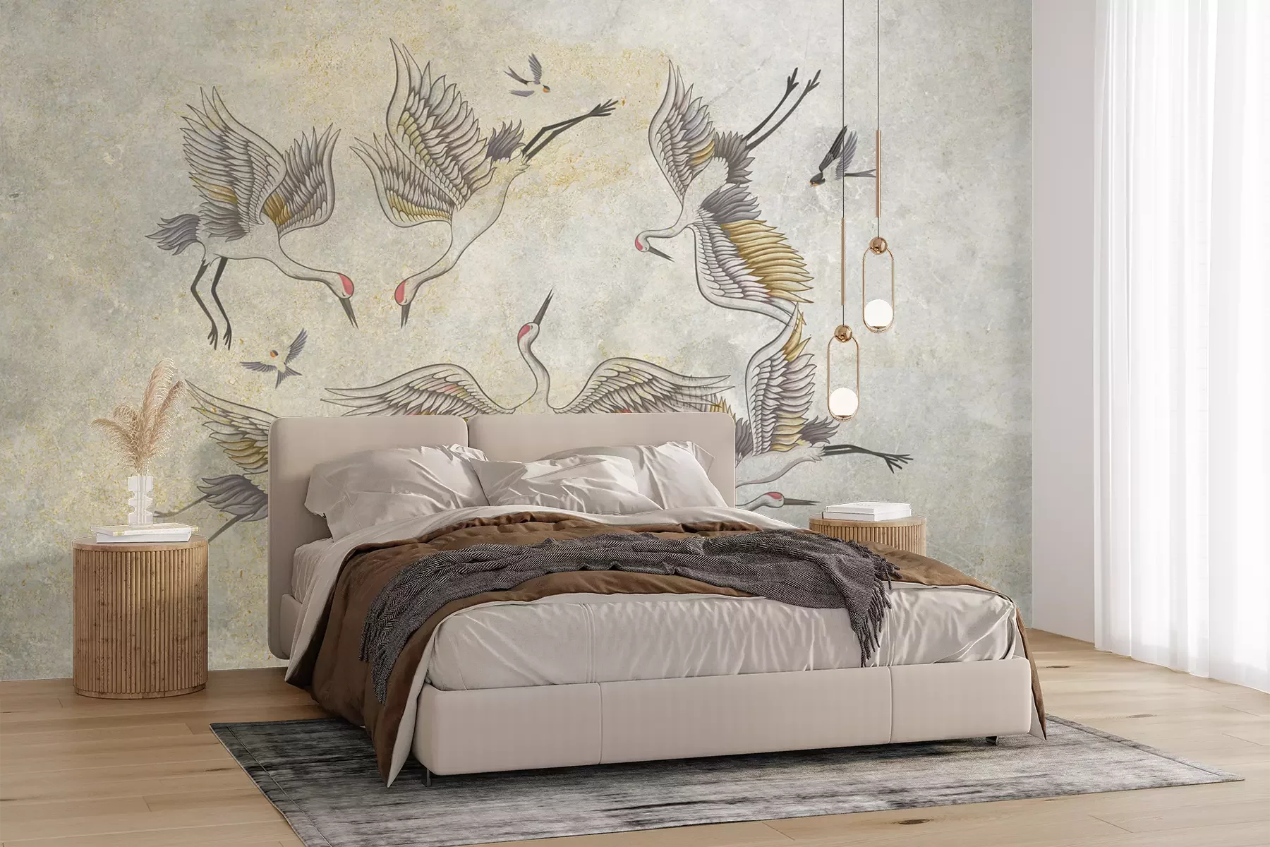 Het materiaal Premium+ is een gestructureerd vinyl op vlies met een gewicht van 255 g/m², dat kleine oneffenheden in de muur effectief camoufleert. De subtiele structuur van fijn zand geeft het oppervlak een exclusieve uitstraling, terwijl de halfmatte afwerking de diepte van de kleuren benadrukt. Het materiaal is dampdoorlatend, waardoor het ook in de keuken en badkamer kan worden gebruikt. De maximale breedte van één baan bedraagt 100 cm – bij grotere afmetingen wordt het fotobehang in meerdere gelijke banen verdeeld. De lijm wordt direct op de muur aangebracht en het behang wordt rand-aan-rand geplakt, wat zorgt voor een esthetisch resultaat zonder zichtbare naden. Het oppervlak kan gemakkelijk worden schoongemaakt door het voorzichtig af te nemen met een vochtige doek.