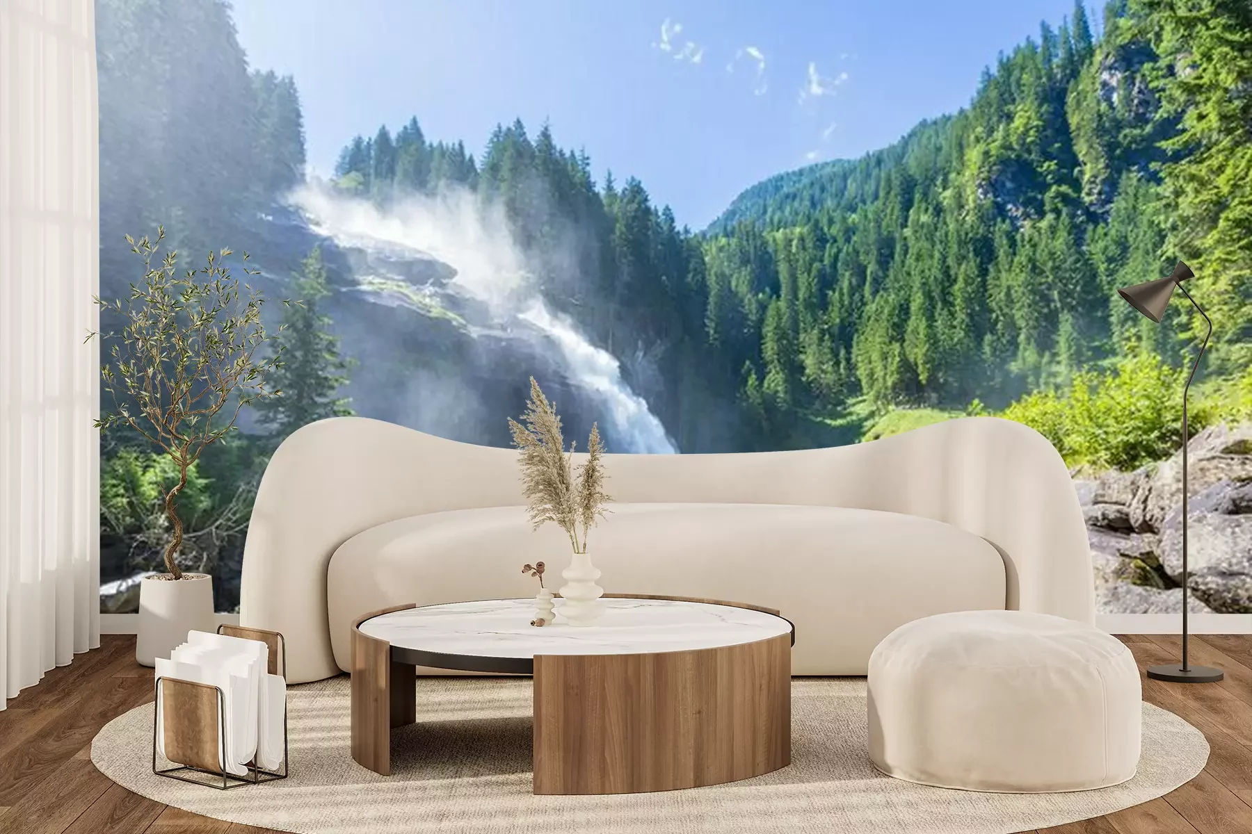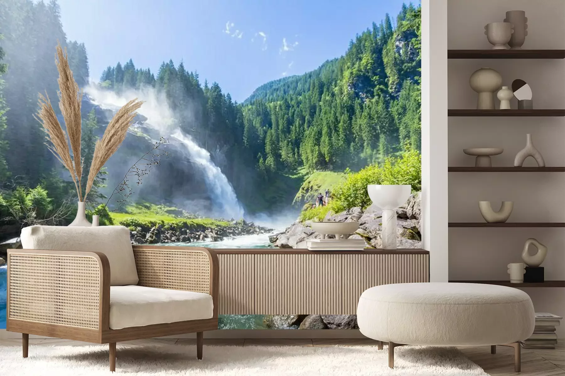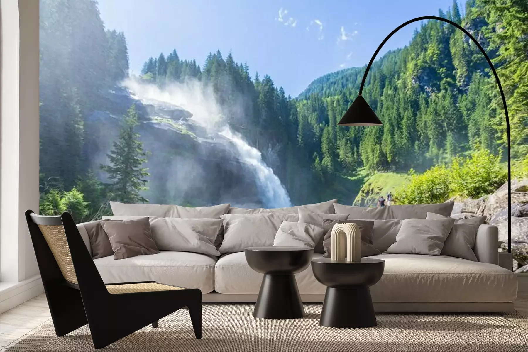 Het materiaal Premium+ is een gestructureerd vinyl op vlies met een gewicht van 255 g/m², dat kleine oneffenheden in de muur effectief camoufleert. De subtiele structuur van fijn zand geeft het oppervlak een exclusieve uitstraling, terwijl de halfmatte afwerking de diepte van de kleuren benadrukt. Het materiaal is dampdoorlatend, waardoor het ook in de keuken en badkamer kan worden gebruikt. De maximale breedte van één baan bedraagt 100 cm – bij grotere afmetingen wordt het fotobehang in meerdere gelijke banen verdeeld. De lijm wordt direct op de muur aangebracht en het behang wordt rand-aan-rand geplakt, wat zorgt voor een esthetisch resultaat zonder zichtbare naden. Het oppervlak kan gemakkelijk worden schoongemaakt door het voorzichtig af te nemen met een vochtige doek.