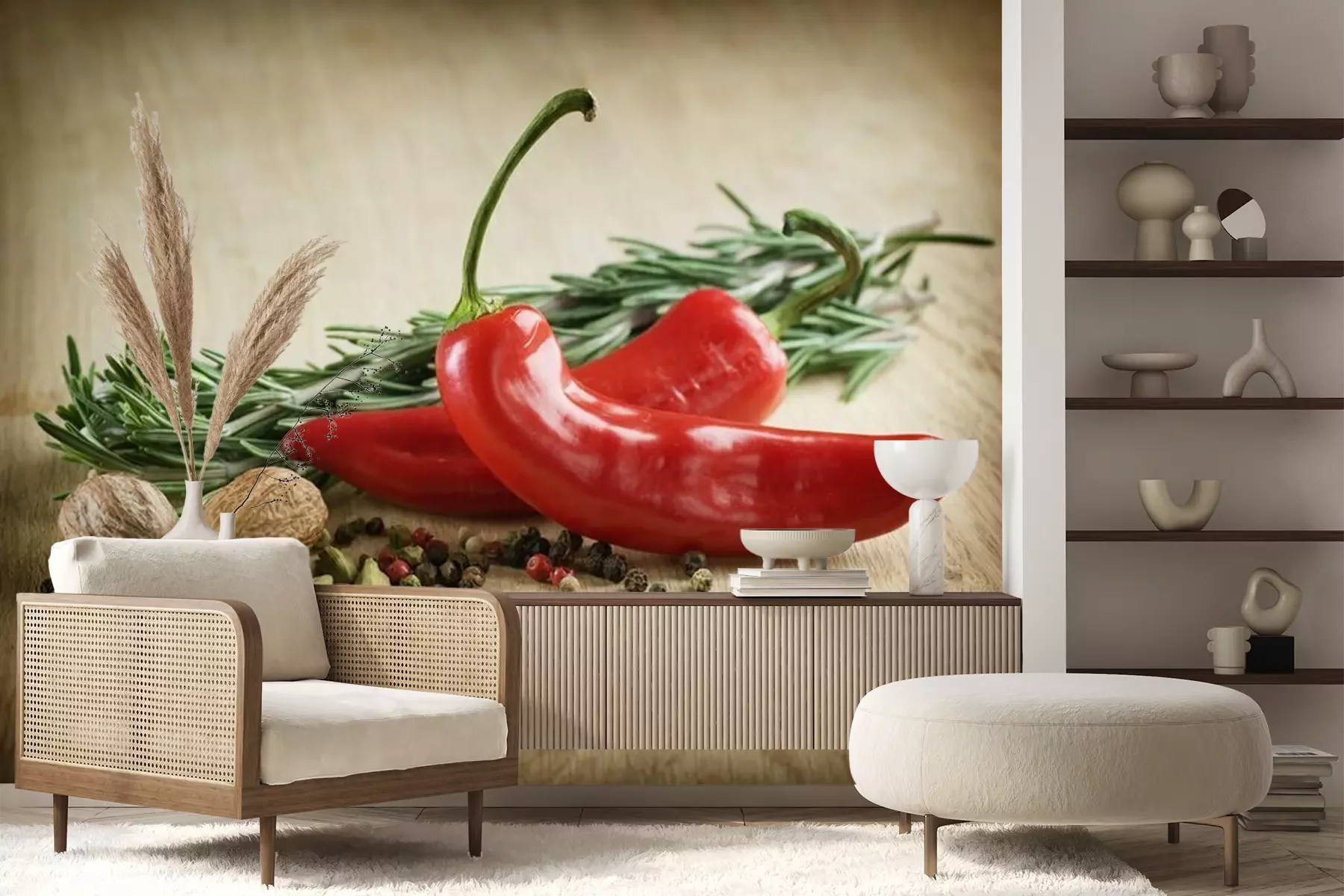 Het materiaal Premium+ is een gestructureerd vinyl op vlies met een gewicht van 255 g/m², dat kleine oneffenheden in de muur effectief camoufleert. De subtiele structuur van fijn zand geeft het oppervlak een exclusieve uitstraling, terwijl de halfmatte afwerking de diepte van de kleuren benadrukt. Het materiaal is dampdoorlatend, waardoor het ook in de keuken en badkamer kan worden gebruikt. De maximale breedte van één baan bedraagt 100 cm – bij grotere afmetingen wordt het fotobehang in meerdere gelijke banen verdeeld. De lijm wordt direct op de muur aangebracht en het behang wordt rand-aan-rand geplakt, wat zorgt voor een esthetisch resultaat zonder zichtbare naden. Het oppervlak kan gemakkelijk worden schoongemaakt door het voorzichtig af te nemen met een vochtige doek.