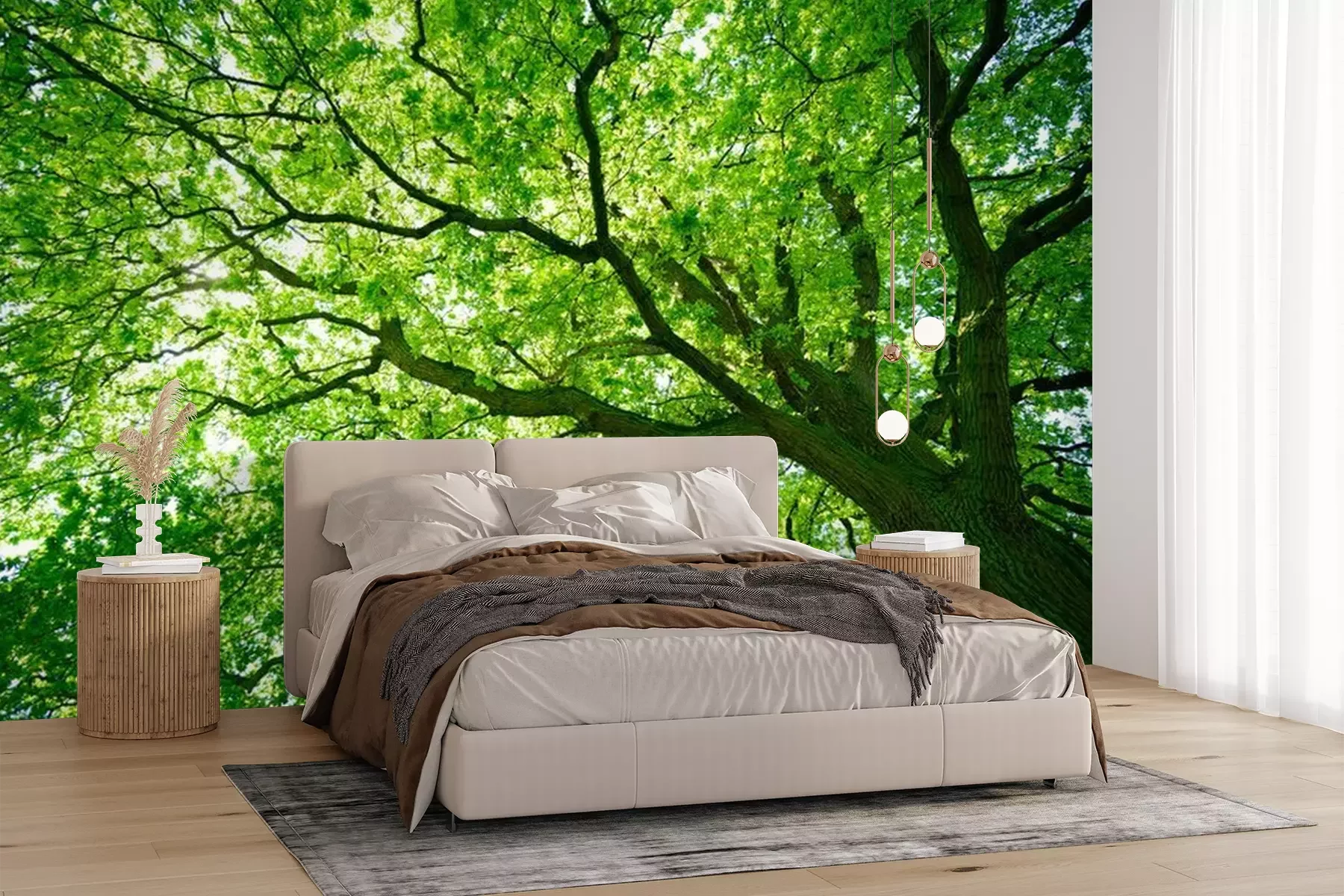 Het materiaal Premium+ is een gestructureerd vinyl op vlies met een gewicht van 255 g/m², dat kleine oneffenheden in de muur effectief camoufleert. De subtiele structuur van fijn zand geeft het oppervlak een exclusieve uitstraling, terwijl de halfmatte afwerking de diepte van de kleuren benadrukt. Het materiaal is dampdoorlatend, waardoor het ook in de keuken en badkamer kan worden gebruikt. De maximale breedte van één baan bedraagt 100 cm – bij grotere afmetingen wordt het fotobehang in meerdere gelijke banen verdeeld. De lijm wordt direct op de muur aangebracht en het behang wordt rand-aan-rand geplakt, wat zorgt voor een esthetisch resultaat zonder zichtbare naden. Het oppervlak kan gemakkelijk worden schoongemaakt door het voorzichtig af te nemen met een vochtige doek.