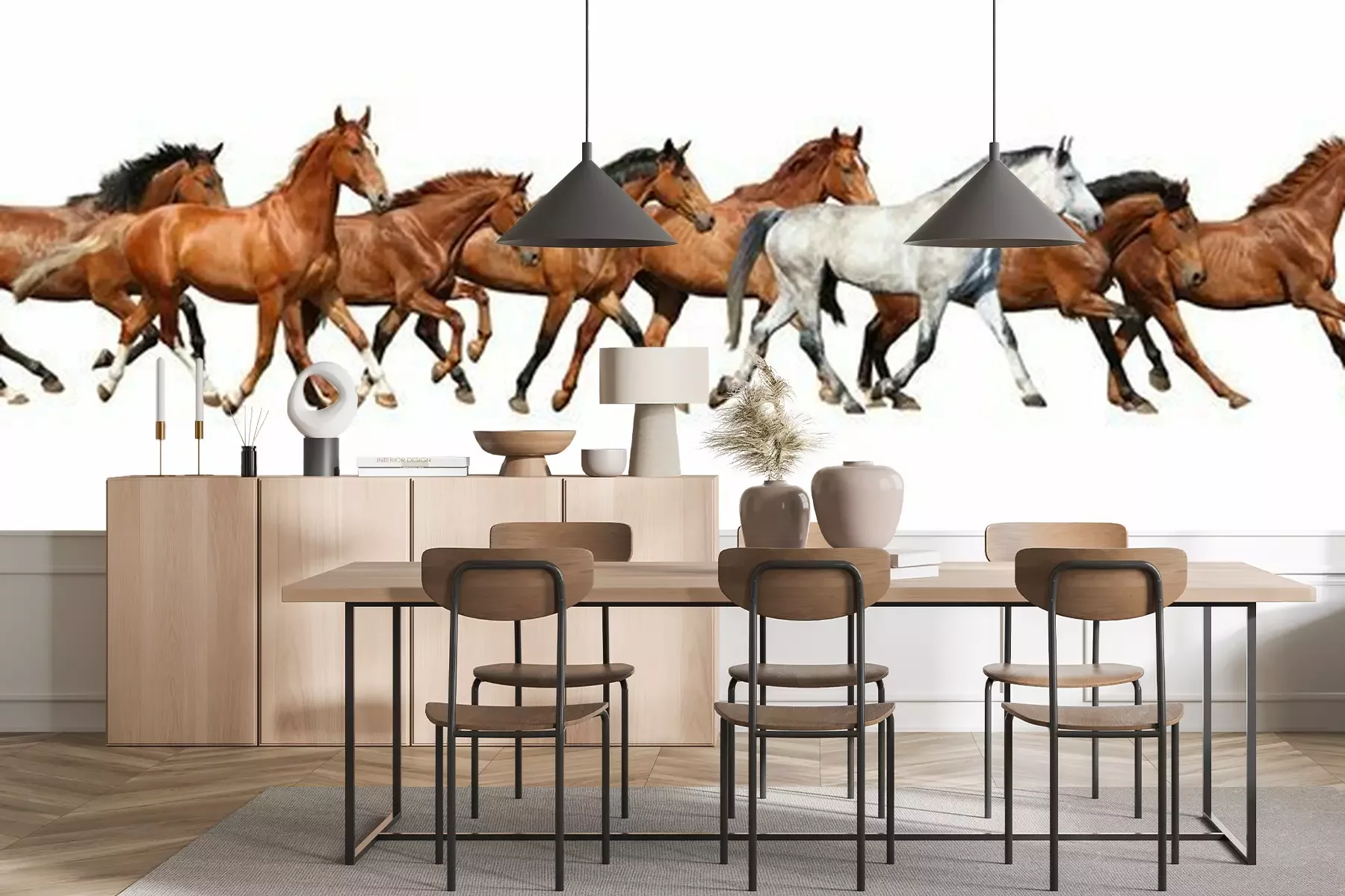 Het materiaal Standard is een hoogwaardig latexmateriaal met een glad, mat oppervlak. Dankzij de HP Latex-printtechnologie zijn de kleuren intens, duurzaam en UV-bestendig, waardoor het patroon jarenlang een onberispelijke uitstraling behoudt. Vervuilde oppervlakken kunnen voorzichtig worden afgeveegd met een droge doek. De maximale breedte van één baan bedraagt 95 cm of 105 cm – afhankelijk van de bestelde fotobehangbreedte. Bij grotere afmetingen wordt het patroon verdeeld over meerdere gelijkmatige banen. Het fotobehang wordt rand-aan-randaangebracht, wat vrijwel onzichtbare naden mogelijk maakt.