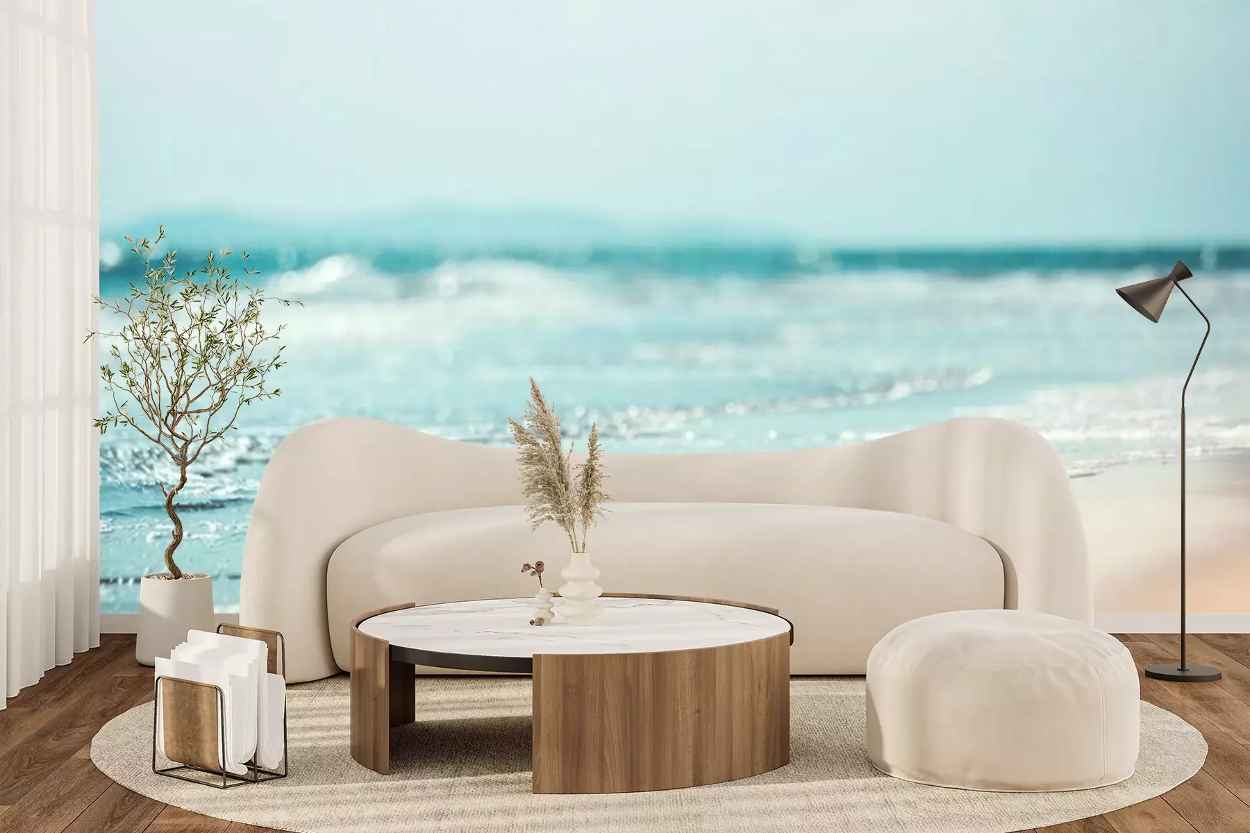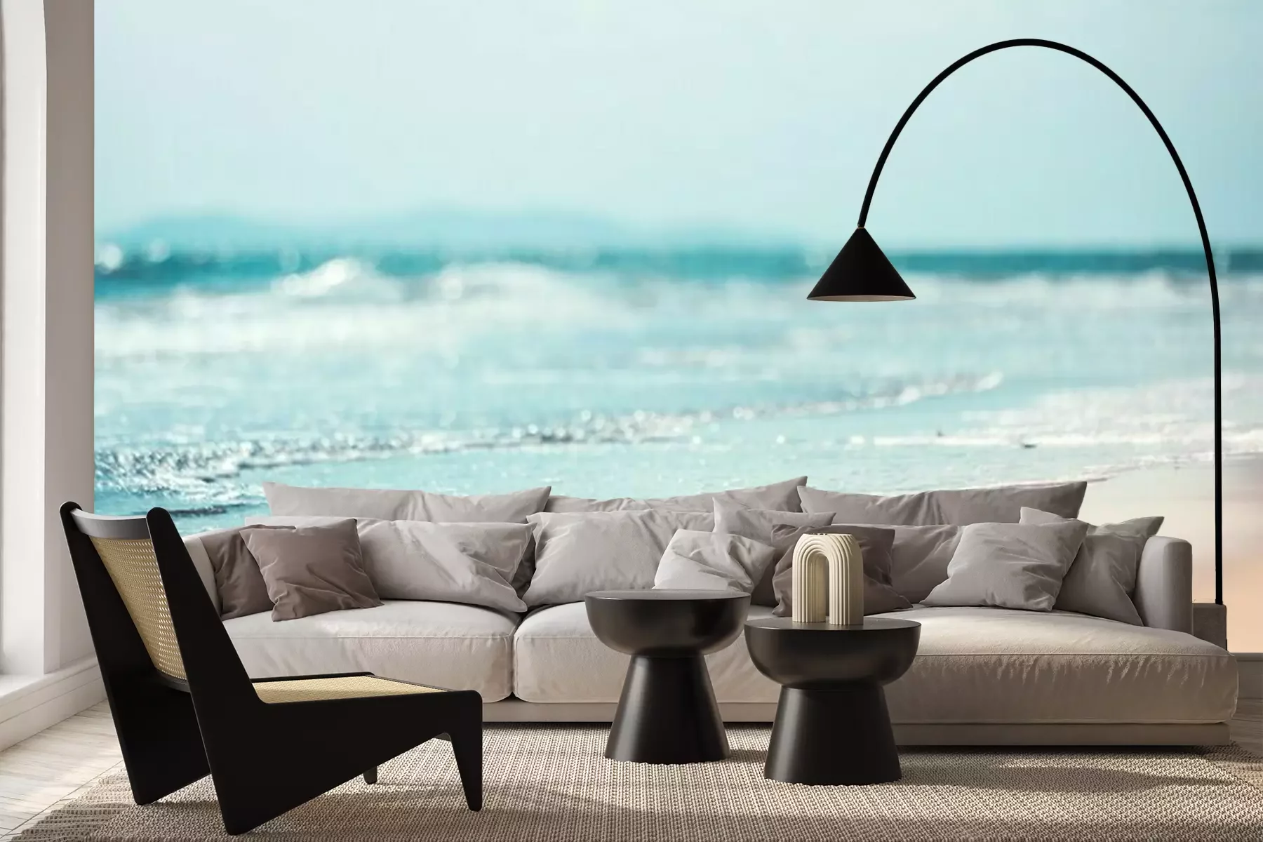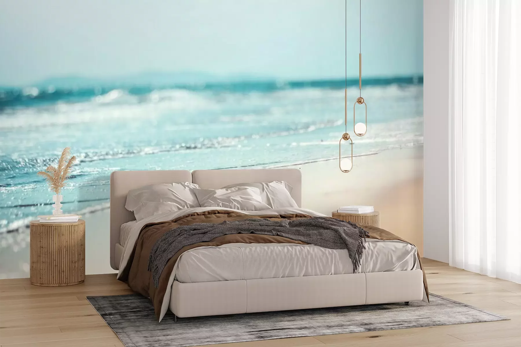 Het materiaal Premium+ is een gestructureerd vinyl op vlies met een gewicht van 255 g/m², dat kleine oneffenheden in de muur effectief camoufleert. De subtiele structuur van fijn zand geeft het oppervlak een exclusieve uitstraling, terwijl de halfmatte afwerking de diepte van de kleuren benadrukt. Het materiaal is dampdoorlatend, waardoor het ook in de keuken en badkamer kan worden gebruikt. De maximale breedte van één baan bedraagt 100 cm – bij grotere afmetingen wordt het fotobehang in meerdere gelijke banen verdeeld. De lijm wordt direct op de muur aangebracht en het behang wordt rand-aan-rand geplakt, wat zorgt voor een esthetisch resultaat zonder zichtbare naden. Het oppervlak kan gemakkelijk worden schoongemaakt door het voorzichtig af te nemen met een vochtige doek.