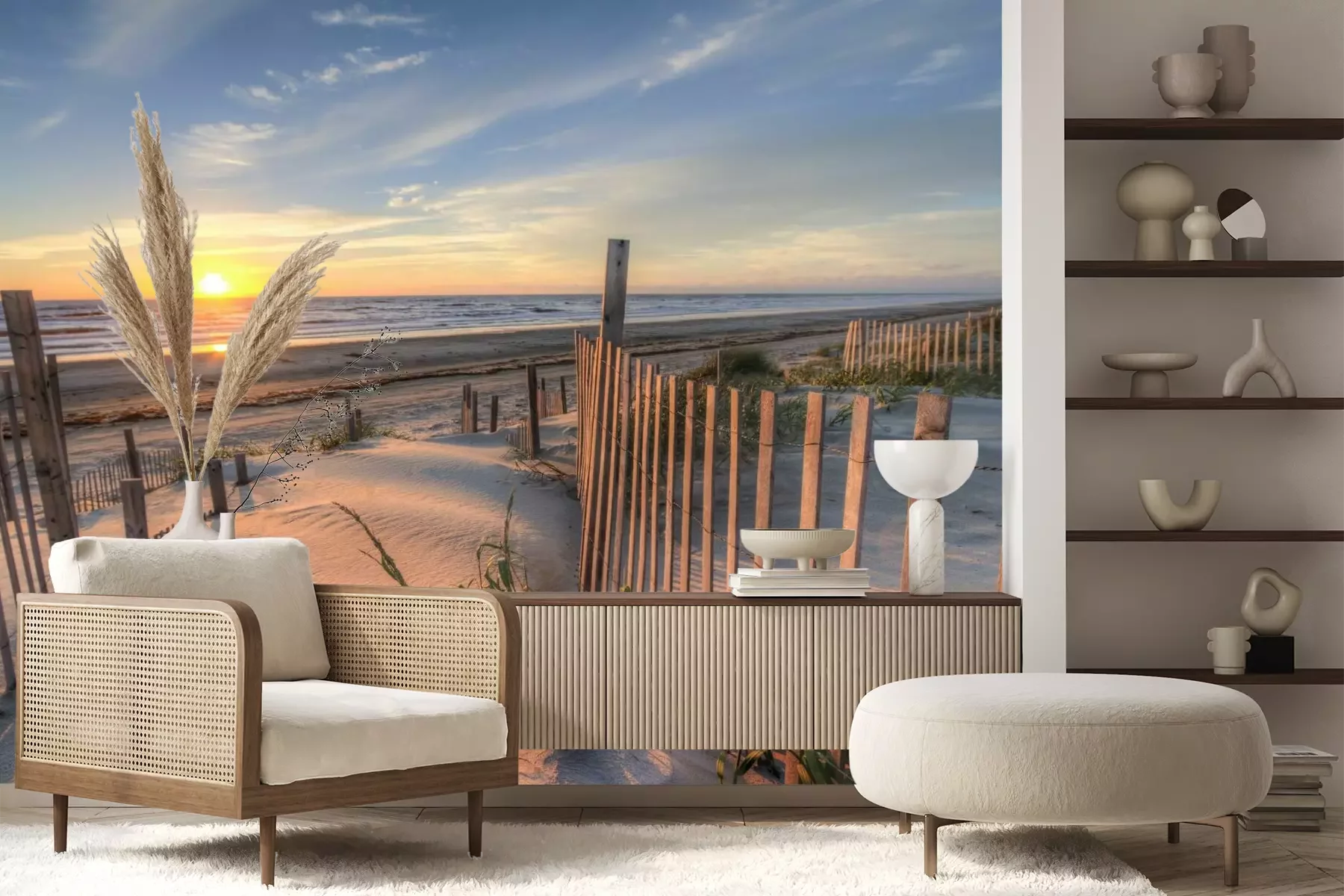 Het materiaal Premium+ is een gestructureerd vinyl op vlies met een gewicht van 255 g/m², dat kleine oneffenheden in de muur effectief camoufleert. De subtiele structuur van fijn zand geeft het oppervlak een exclusieve uitstraling, terwijl de halfmatte afwerking de diepte van de kleuren benadrukt. Het materiaal is dampdoorlatend, waardoor het ook in de keuken en badkamer kan worden gebruikt. De maximale breedte van één baan bedraagt 100 cm – bij grotere afmetingen wordt het fotobehang in meerdere gelijke banen verdeeld. De lijm wordt direct op de muur aangebracht en het behang wordt rand-aan-rand geplakt, wat zorgt voor een esthetisch resultaat zonder zichtbare naden. Het oppervlak kan gemakkelijk worden schoongemaakt door het voorzichtig af te nemen met een vochtige doek.