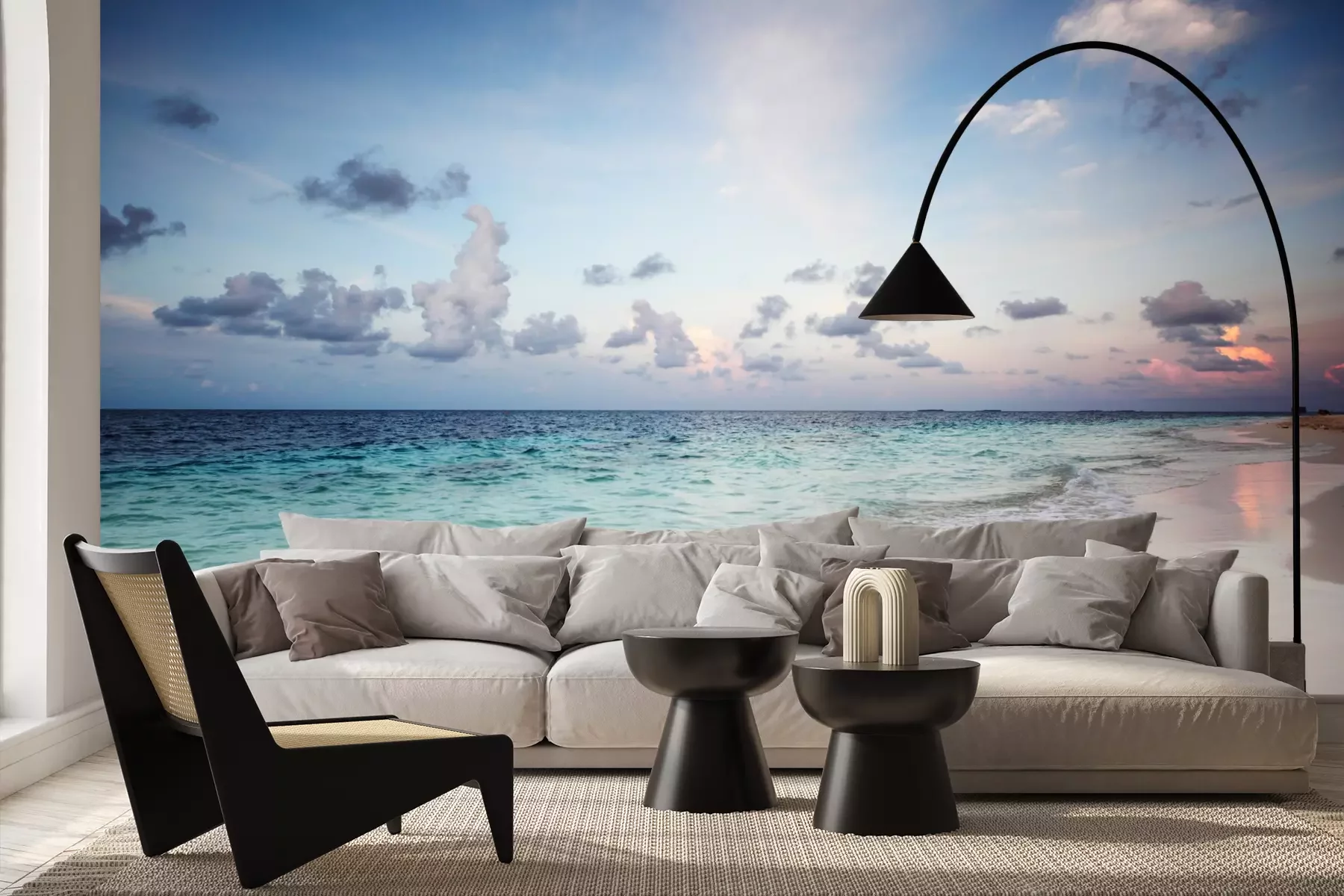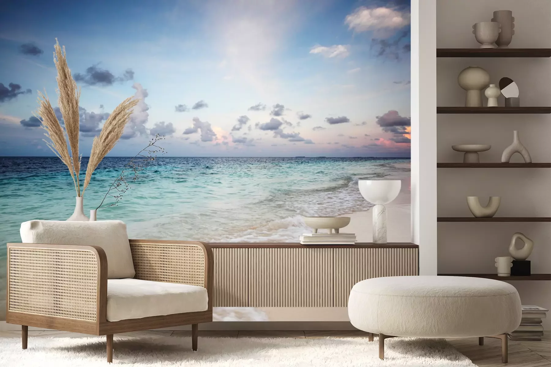 Het materiaal Premium+ is een gestructureerd vinyl op vlies met een gewicht van 255 g/m², dat kleine oneffenheden in de muur effectief camoufleert. De subtiele structuur van fijn zand geeft het oppervlak een exclusieve uitstraling, terwijl de halfmatte afwerking de diepte van de kleuren benadrukt. Het materiaal is dampdoorlatend, waardoor het ook in de keuken en badkamer kan worden gebruikt. De maximale breedte van één baan bedraagt 100 cm – bij grotere afmetingen wordt het fotobehang in meerdere gelijke banen verdeeld. De lijm wordt direct op de muur aangebracht en het behang wordt rand-aan-rand geplakt, wat zorgt voor een esthetisch resultaat zonder zichtbare naden. Het oppervlak kan gemakkelijk worden schoongemaakt door het voorzichtig af te nemen met een vochtige doek.