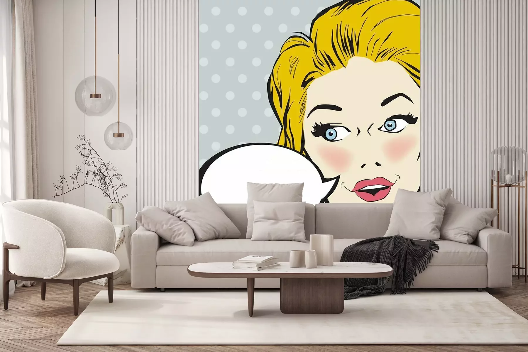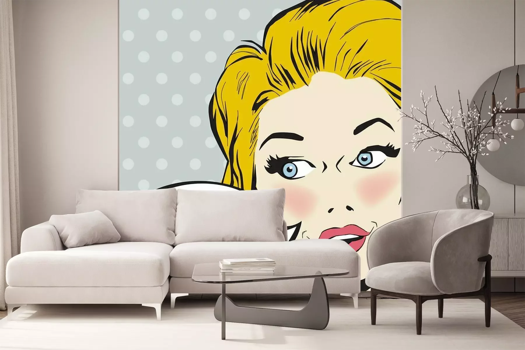 Een vrouw met blond haar in pop-artstijlProbleemloze bezorging verzorgd door vertrouwde vervoerders