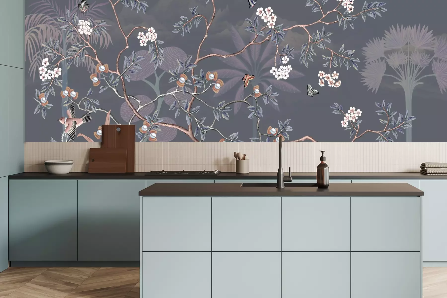 Het materiaal Premium is een glad vinyl op vlies, dat bestand is tegen uitrekken en vervorming. Het is dampdoorlatend – de muren kunnen vrij ademen – waardoor het geschikt is voor gebruik in de keuken en badkamer. Bij vervuiling kan het materiaal worden afgenomen met een vochtige doek. De maximale breedte van één baan bedraagt 95 of 105 cm, afhankelijk van de beschikbaarheid. Montage vindt plaats met de rand-aan-rand methode, wat een esthetisch resultaat zonder zichtbare naden oplevert. Omdat de lijm rechtstreeks op de muur wordt aangebracht, verloopt de installatie van het fotobehang snel en eenvoudig.