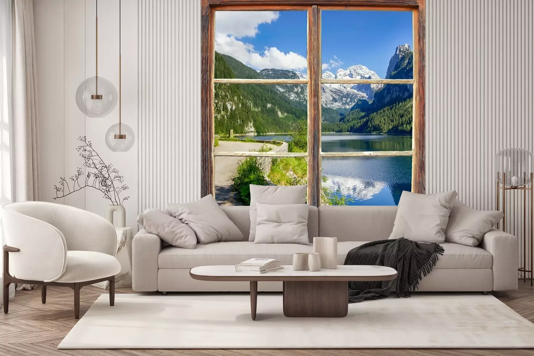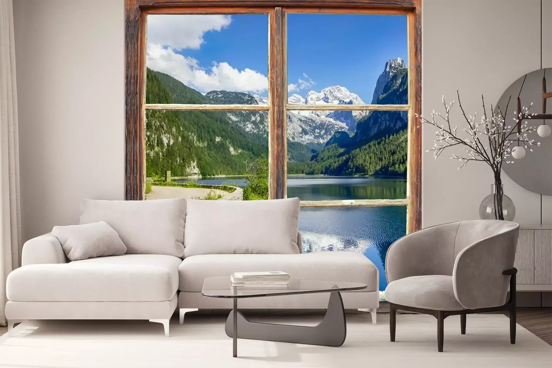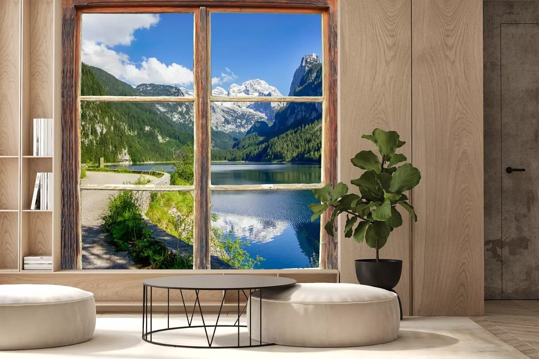 Uitzicht vanuit het raam op SeewaldseeFotobehang